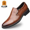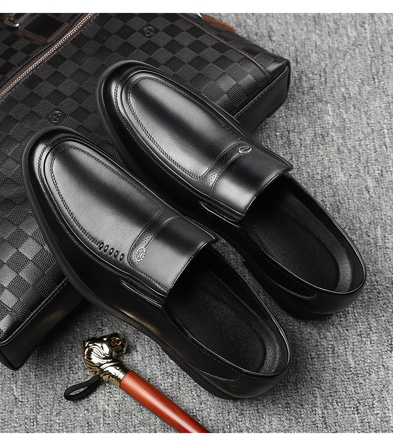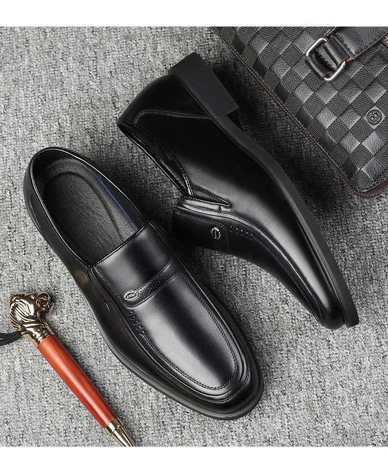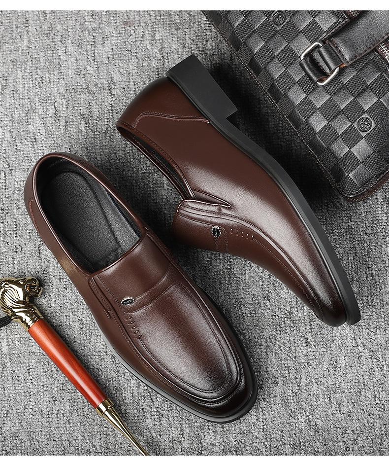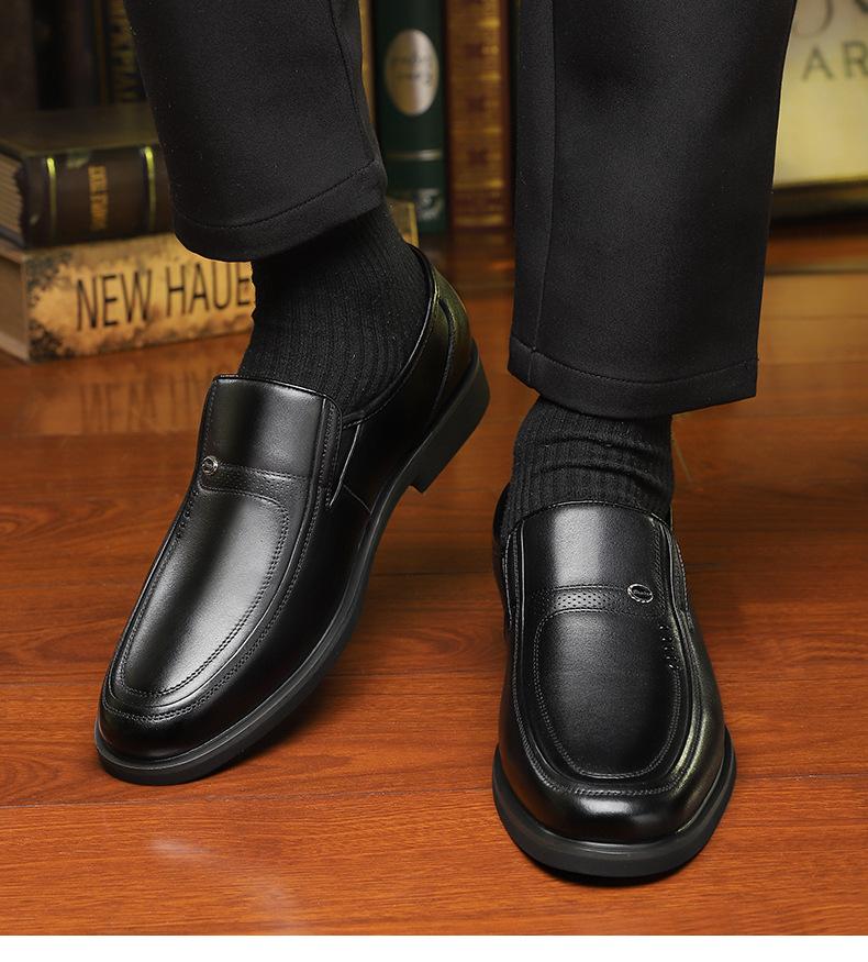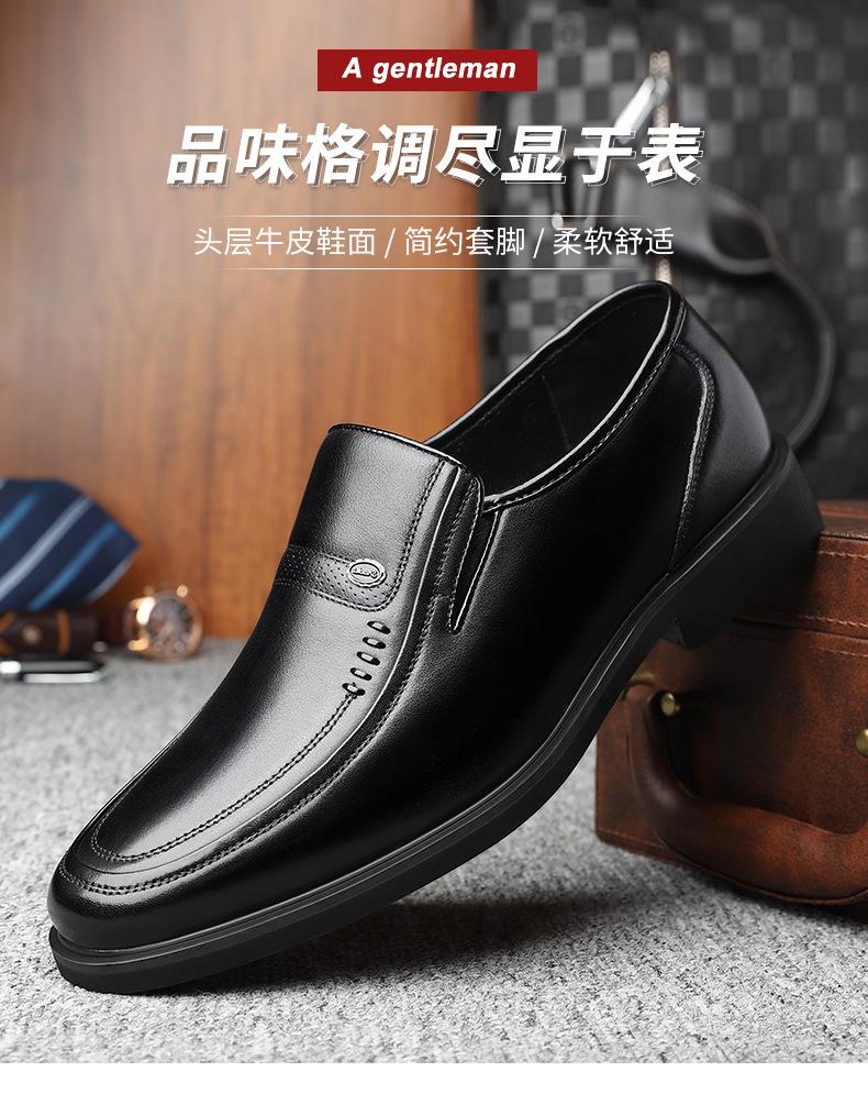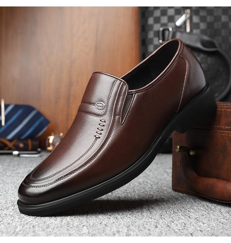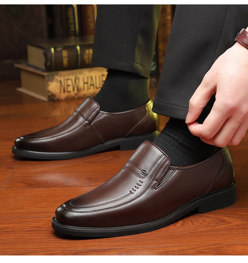 Zapatos de cuero para hombre, ropa formal de negocios, zapatos para padre de mediana edad y anciano, piel de vaca, primavera y otoño, antideslizantes, zapatos para poner el pie, una generación de cabello