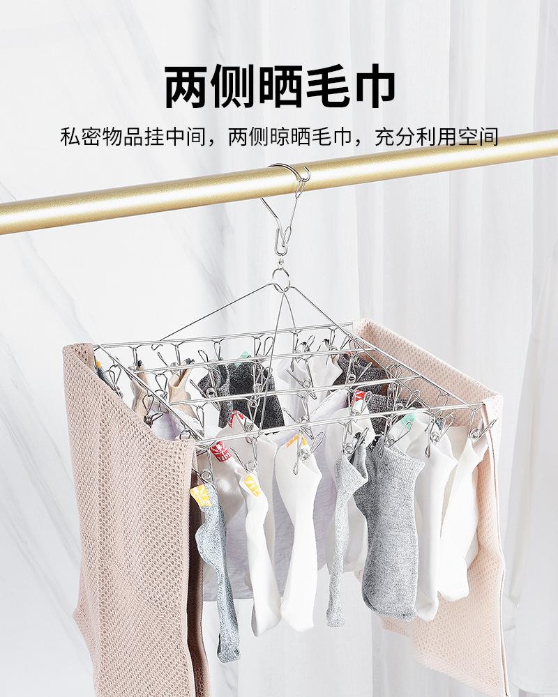 Compra Tendedero de acero inoxidable con múltiples clips para calcetines, ropa, función de clip, redondo, secado fresco, ropa interior para el hogar, artefacto con gancho al por mayor en Joom.pro
