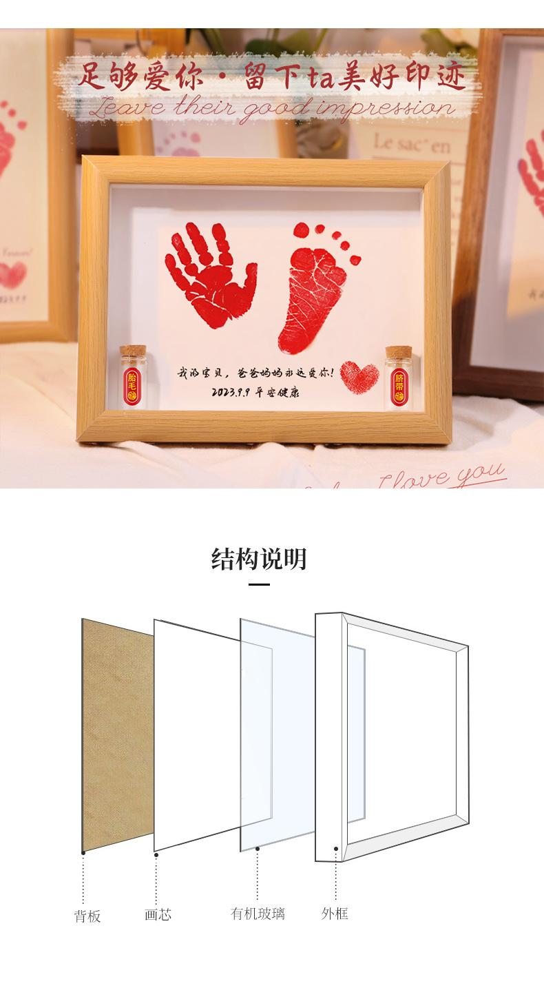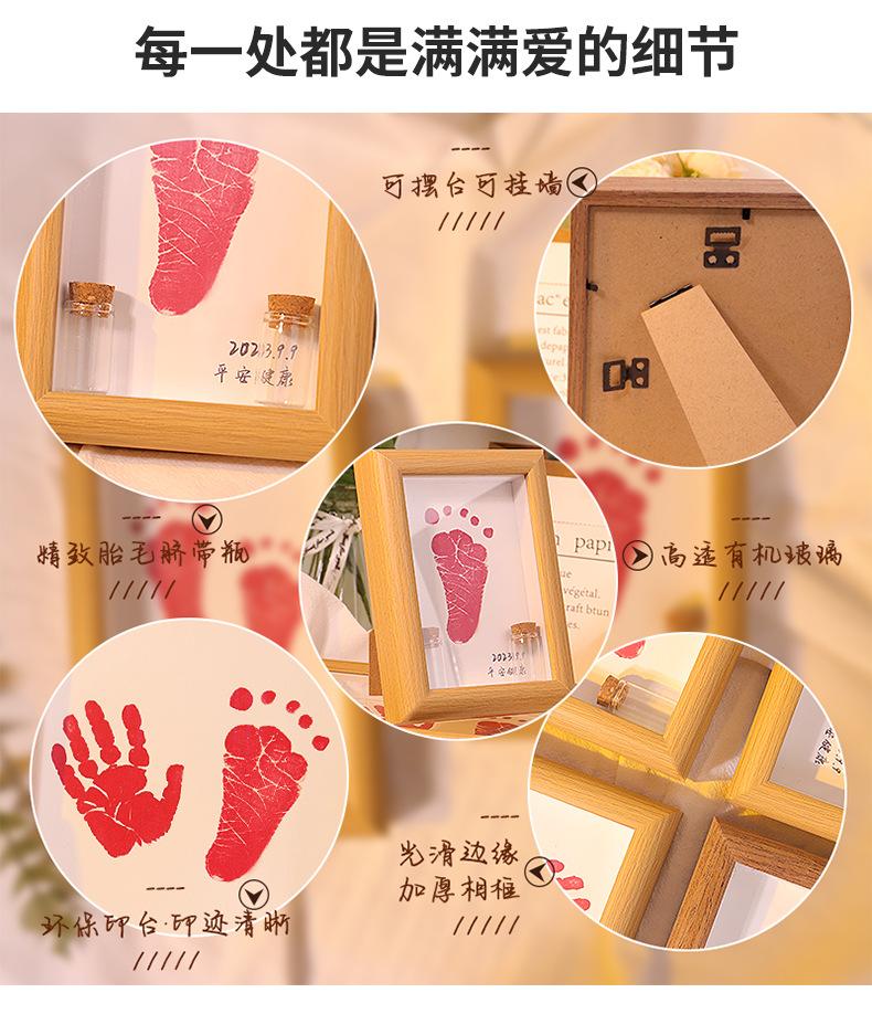 Entrega: almohadilla de tinta + lápiz óptico + papel para frotar + frasco de cabello fetal + frasco de cordón umbilical + pegatina
