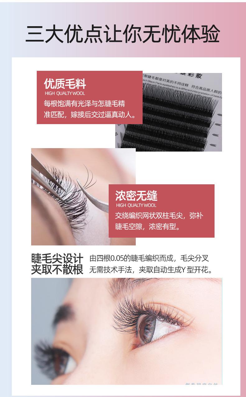 Injerto de pestañas en forma de Y, cabello de floración automática, suave y delicado, pestañas de belleza mixtas, pestañas postizas individuales naturales y gruesas