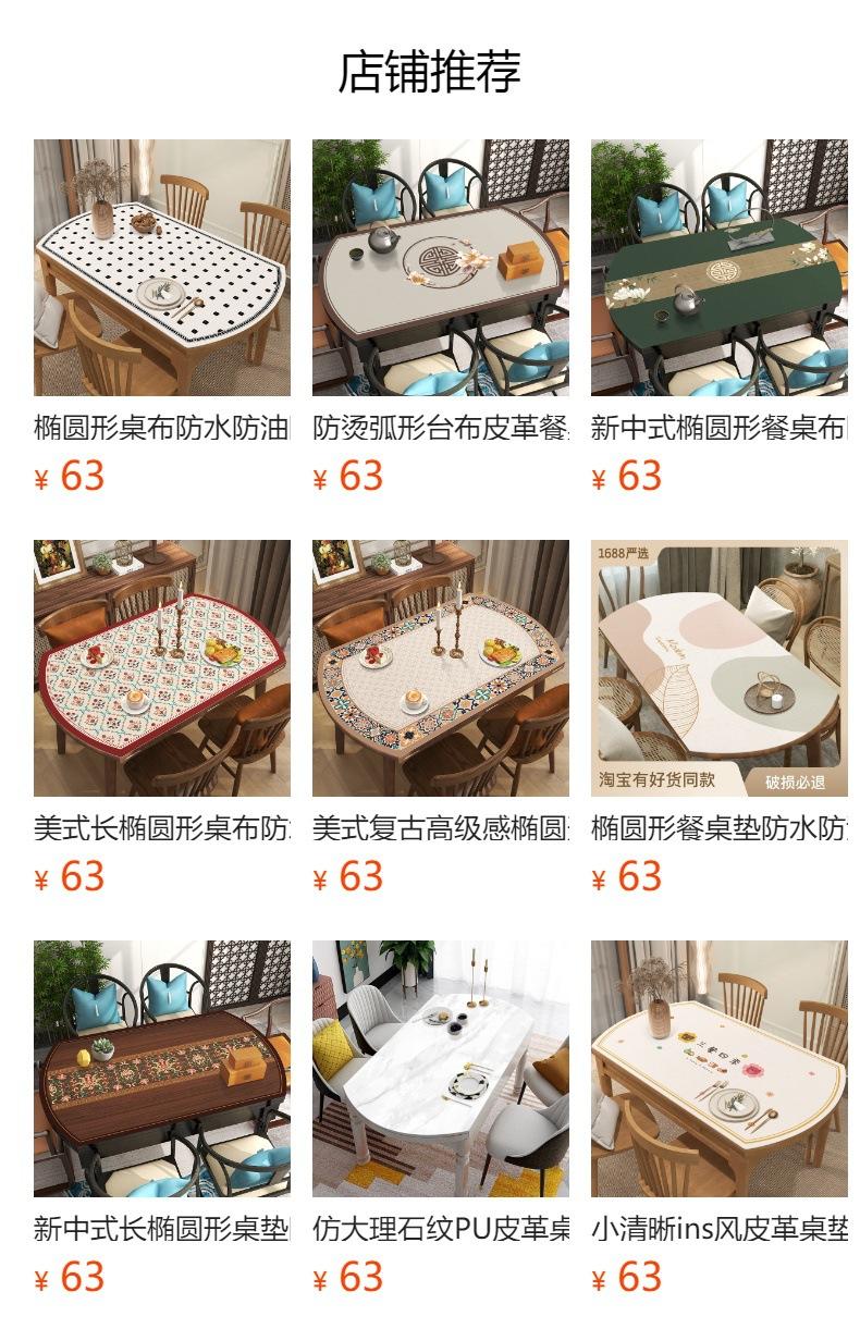 Mantel ovalado de cuero, impermeable, a prueba de aceite y antiescaldaduras, desechable, plegable, de cuero curvo, redondo, para mesa de centro