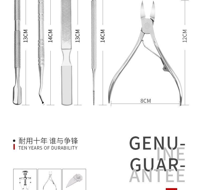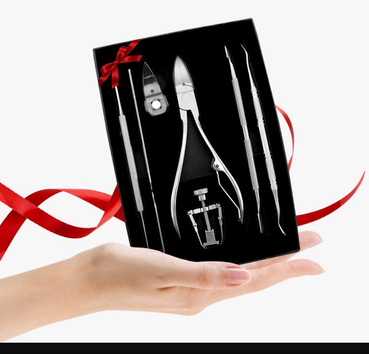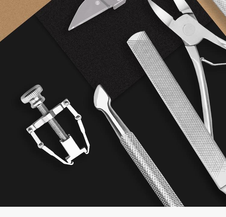 Juego de alicates de punta de pollo de acero inoxidable, cortaúñas, alisador, herramienta para recoger uñas, juego de herramientas para el cuidado de las uñas duras, color gris