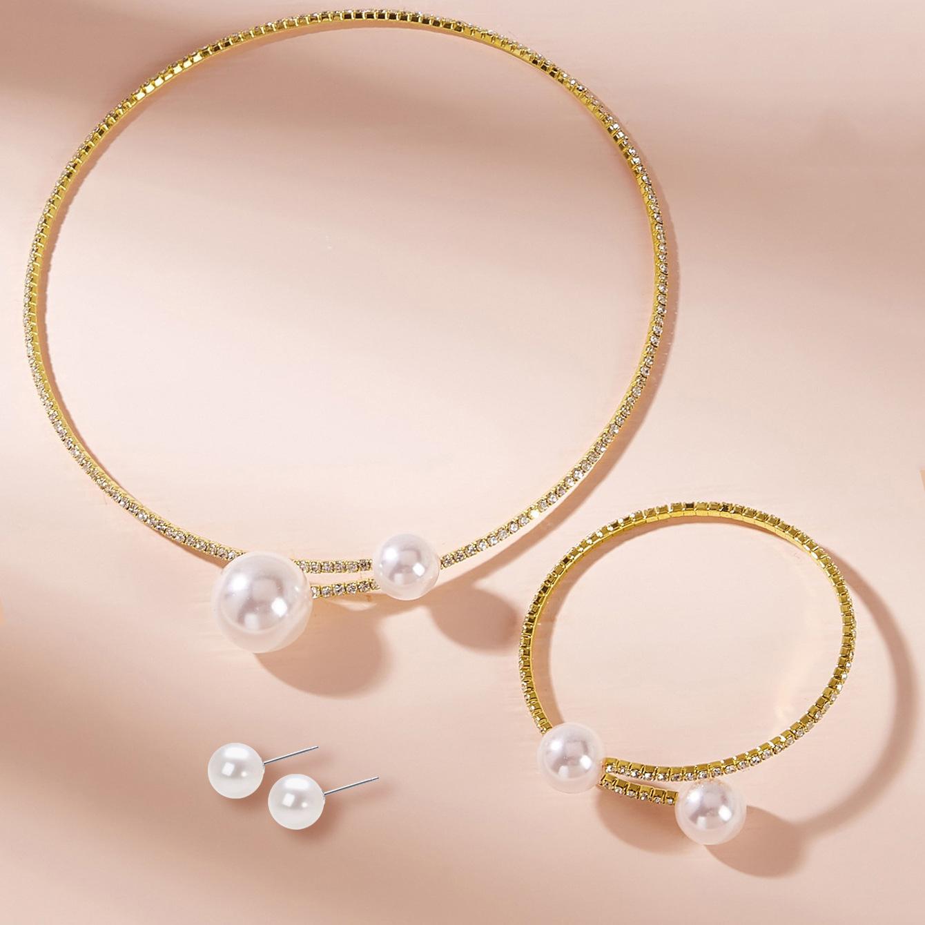 Joyería de estilo japonés y coreano, collar, pendientes, pulsera, cadena de clavícula sencilla, traje de diamante completo, perla, cuello abierto para mujer