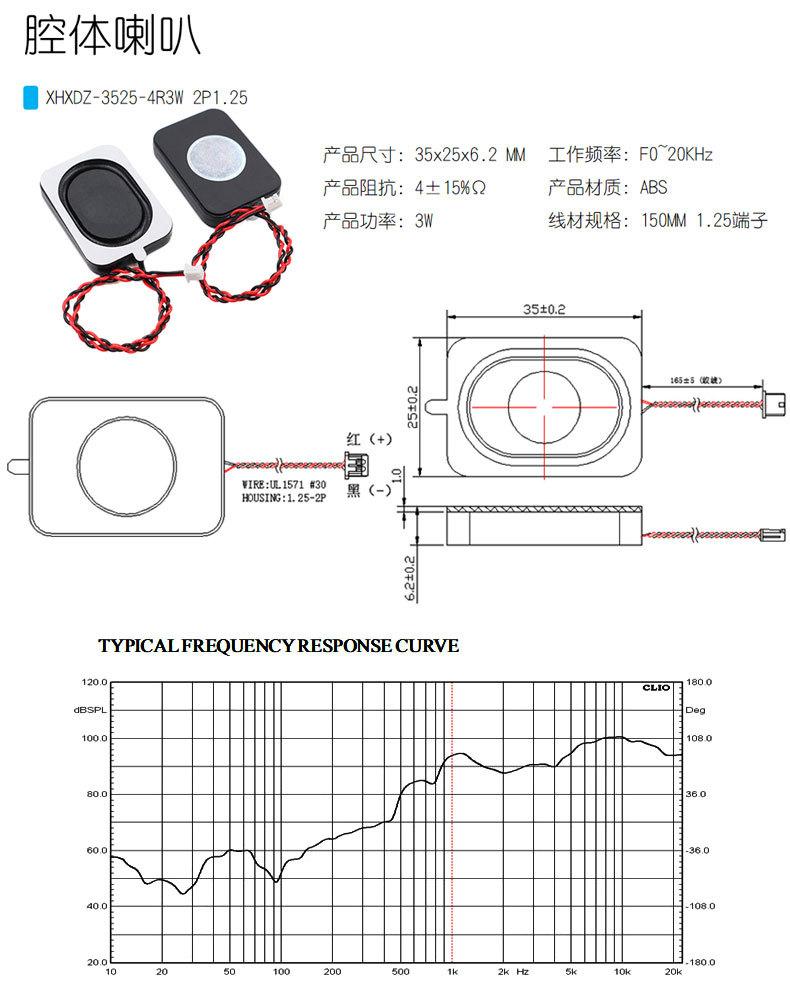 Altavoz impermeable 3525 de plástico con cavidad magnética interna 2535 8 ohm/4 Ohm 2 vatios 3W Altavoz de CAJA de frecuencia completa