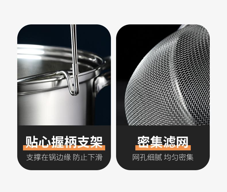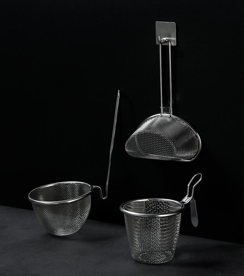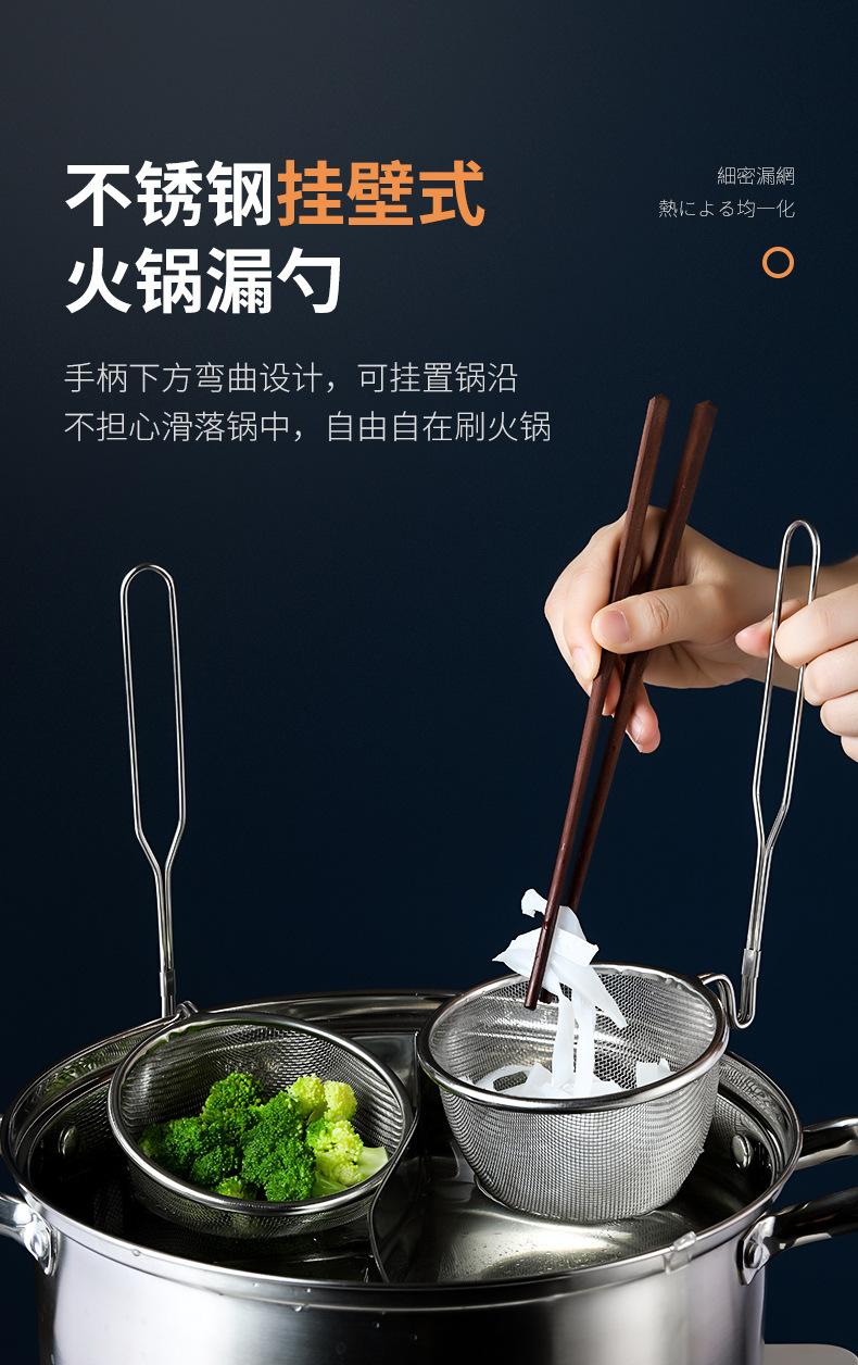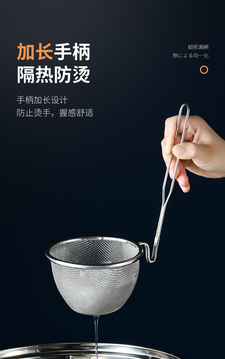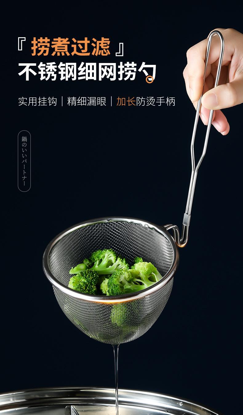 Colador de filtro para olla caliente de estilo japonés, multifuncional, de acero inoxidable, para el hogar, con malla separadora de residuos de aceite, colador de tamaño pequeño.