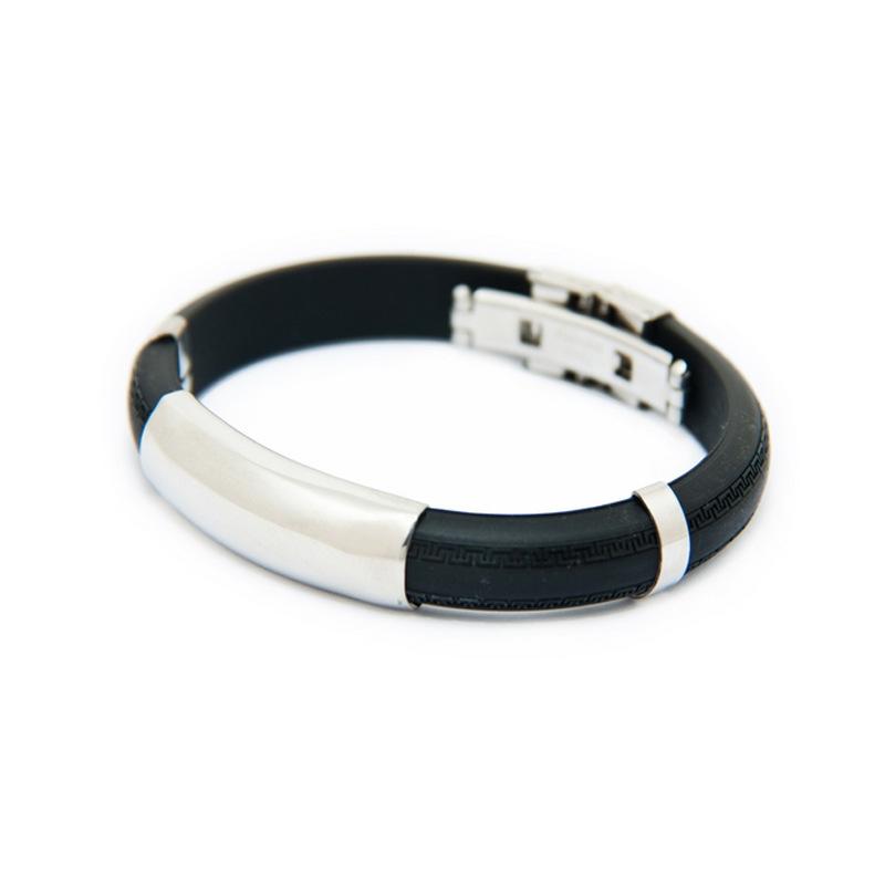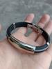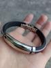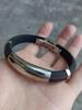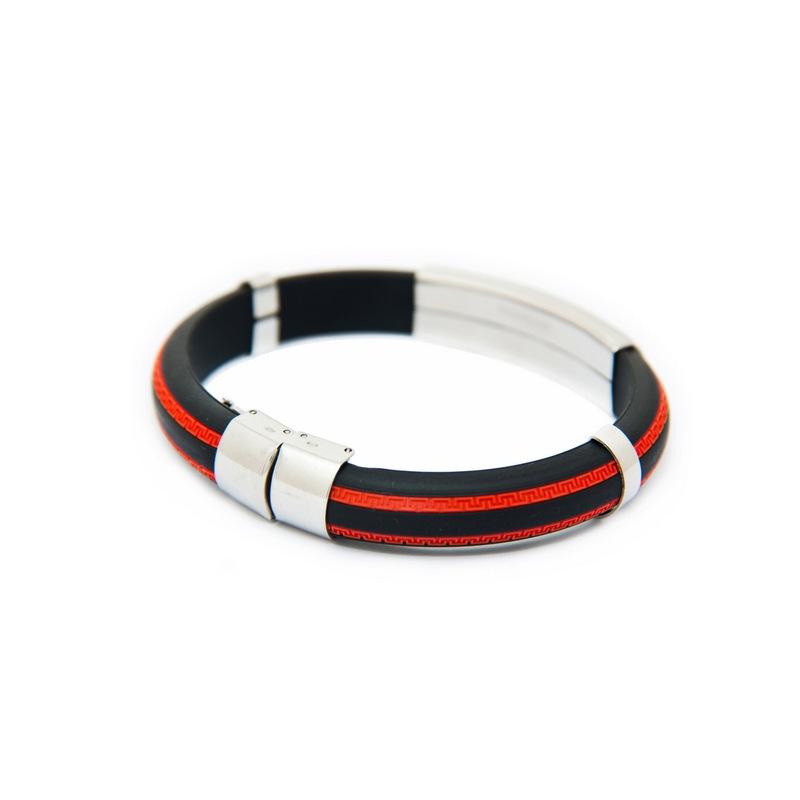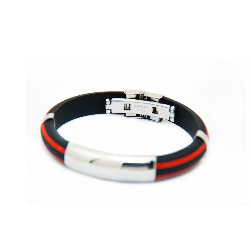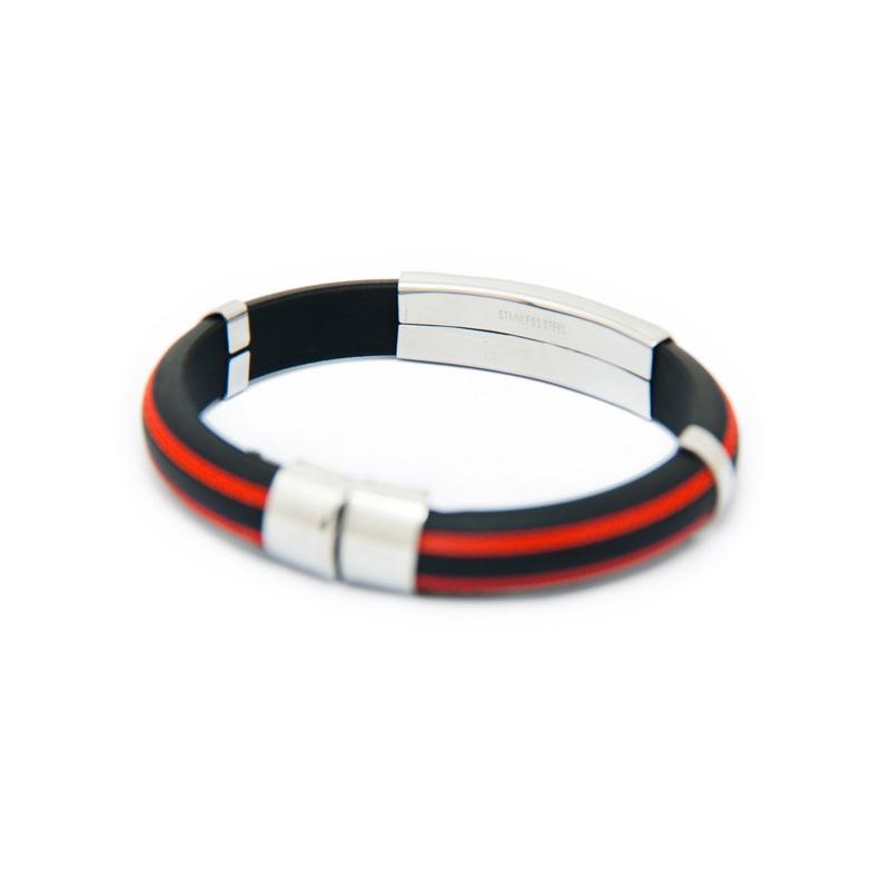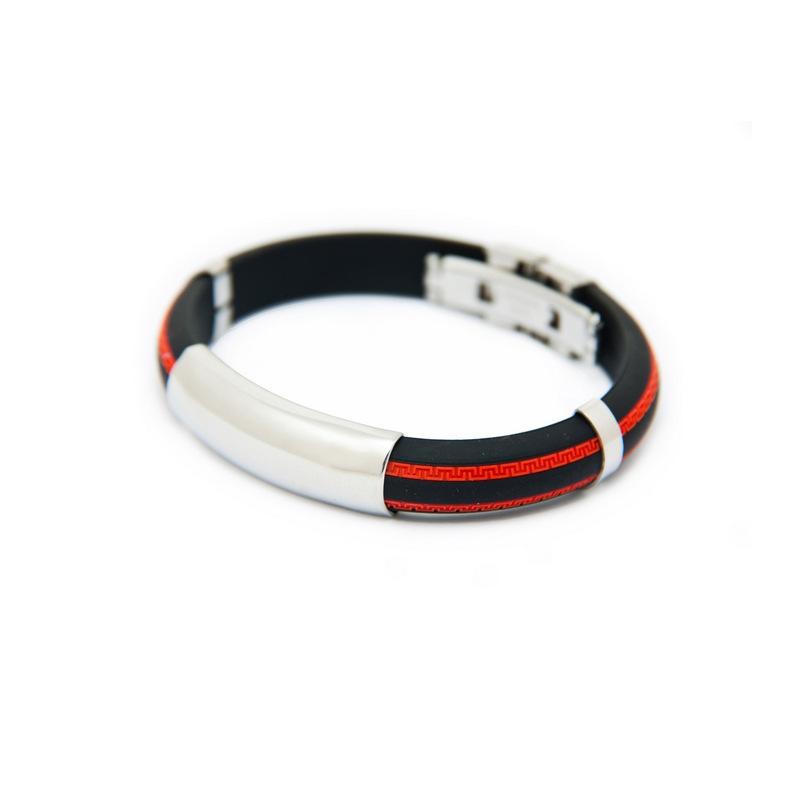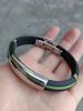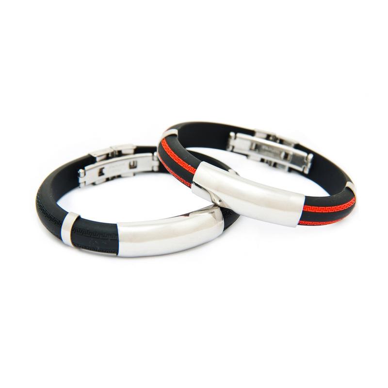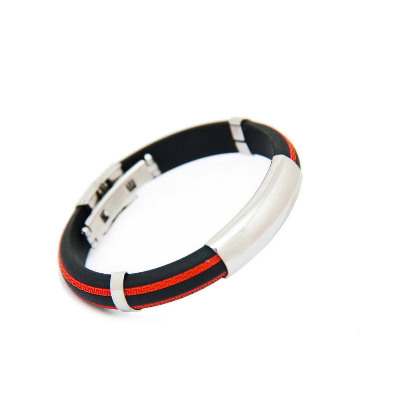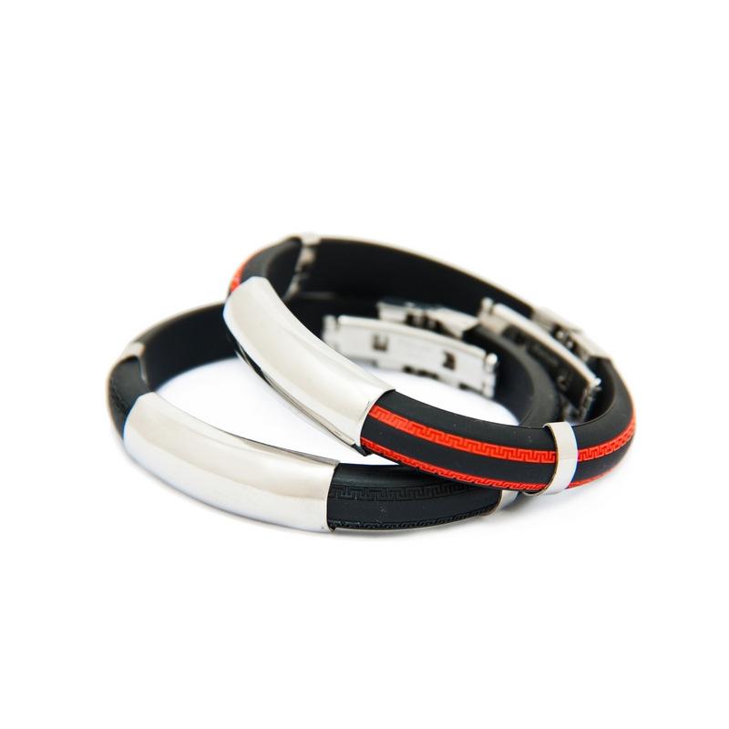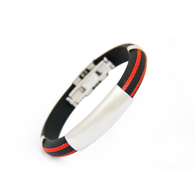 Pulsera de Arco Pulido Ondulado Transfronterizo Negro Rojo Hebilla Mariposa Parejas Europeas y Americanas Acero Inoxidable Pulsera de Silicona