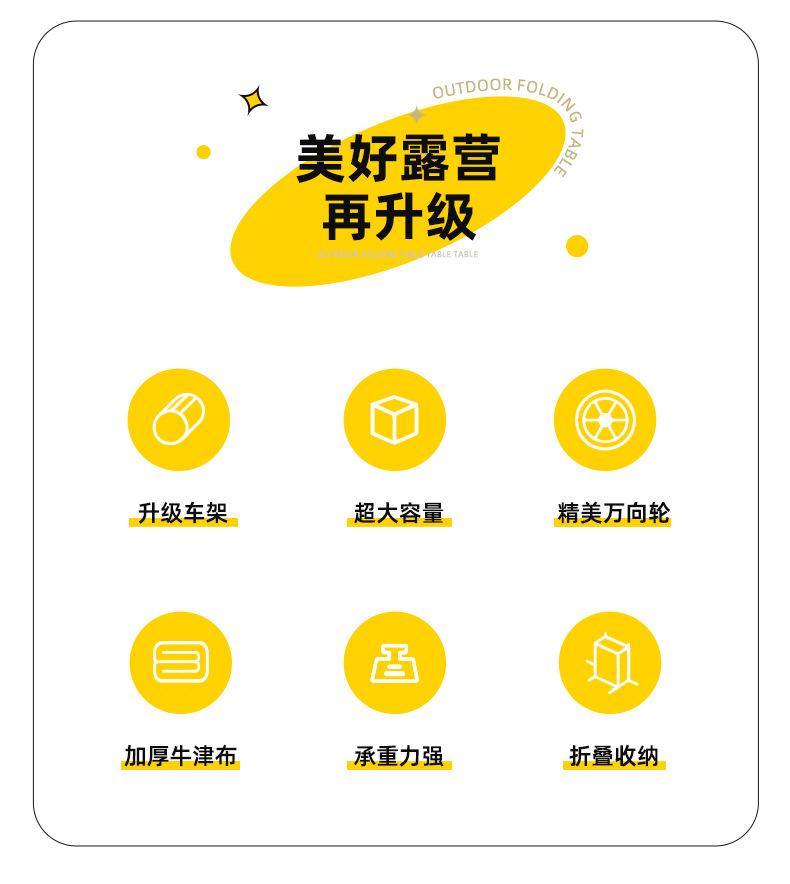 Carro de campamento para exteriores, equipo portátil plegable, carro de campamento, carro de campamento, carro de campamento, carro de viaje para picnic