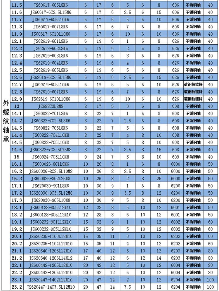 Polea de alta velocidad JS620447-14C2L12M10 con rodillo de tornillo de acero inoxidable y cojinete metálico de rosca externa