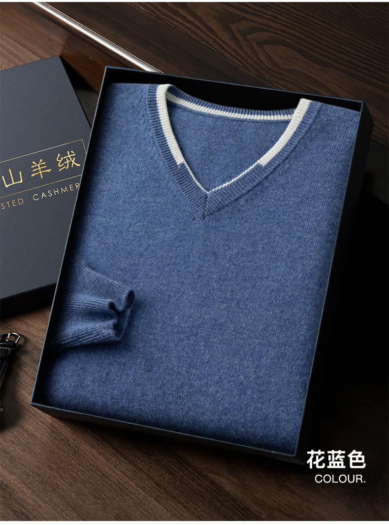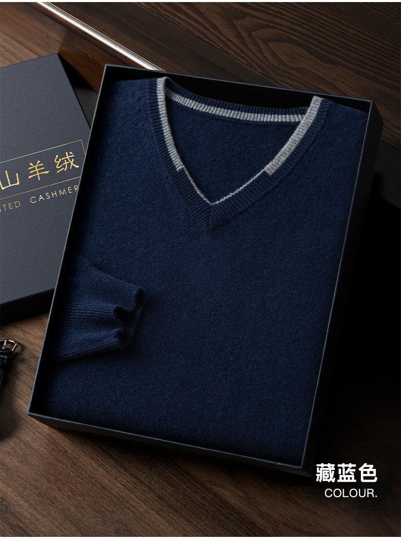 23 otoño e invierno Nuevo suéter de cachemira de montaña para hombre Cuello en V jacquard combinación de colores jersey manga larga suéter de punto fondo top versátil