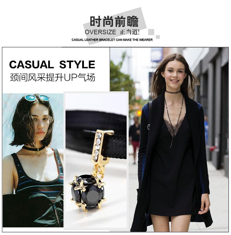 Zircón artificial aleación de zinc cadena de cuerda de cuero de alta calidad |