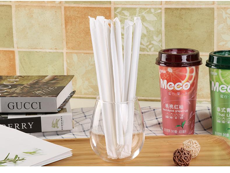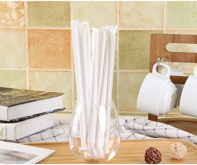 Pajita de papel desechable de 12 x 250 mm, respetuosa con el medio ambiente, embalaje independiente, con punta, degradable, larga y gruesa.