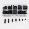 Columna de aislamiento hexagonal de nailon M3 de plástico negro de 520 piezas con tornillos, tuercas y juntas en caja.