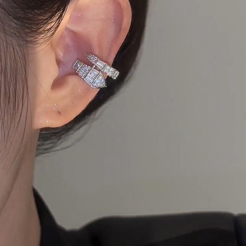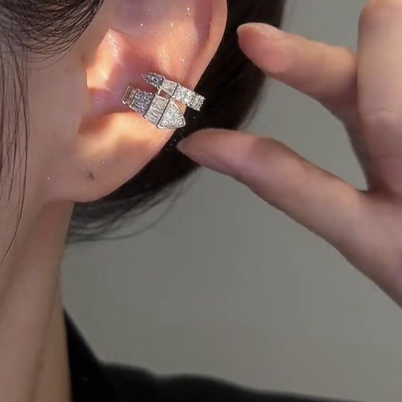 Pendientes de clip para oreja personalizados con circonita en forma de serpiente, estilo dulce y moderno, con diseño de nicho femenino, sencillos, combinables y a la moda, sin orejas.