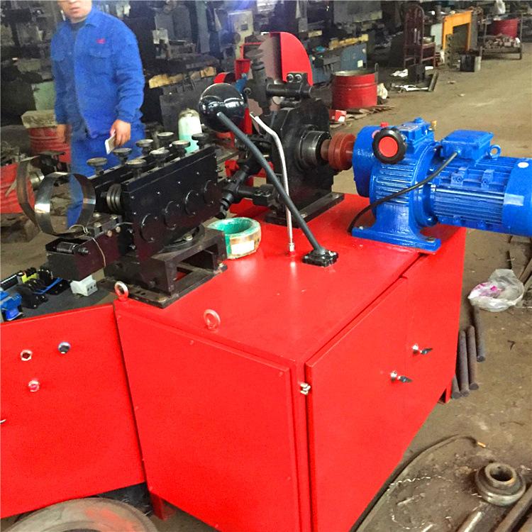 La máquina para fabricar tubos es accionada por un motor de velocidad fija que impulsa el núcleo del eje impulsor. Un engranaje helicoidal en el eje del núcleo engrana con dos engranajes rectos para tirar de la banda de acero. Tras prensar y rebordear la banda de acero con cuatro juegos de rodillos, se enrolla alrededor del núcleo. En el eje, la rueda de prensado muerde, la rueda de compactación embute y la rueda de compactación la compacta para formar un fuelle espiral. cm17