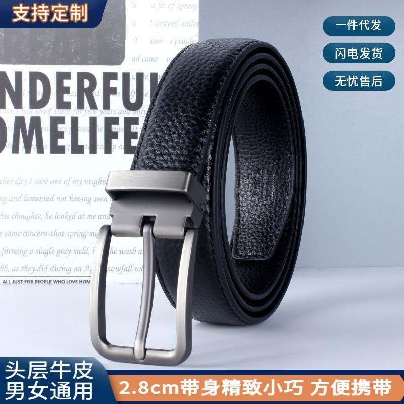 Hebilla de pin unisex capa superior versión de Hong Kong estrecho 2.8 ancho estudiante niños todo-combinable cinturón de cuero genuino negocio simple casual
