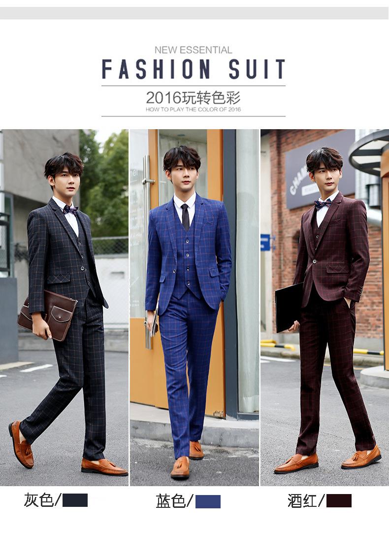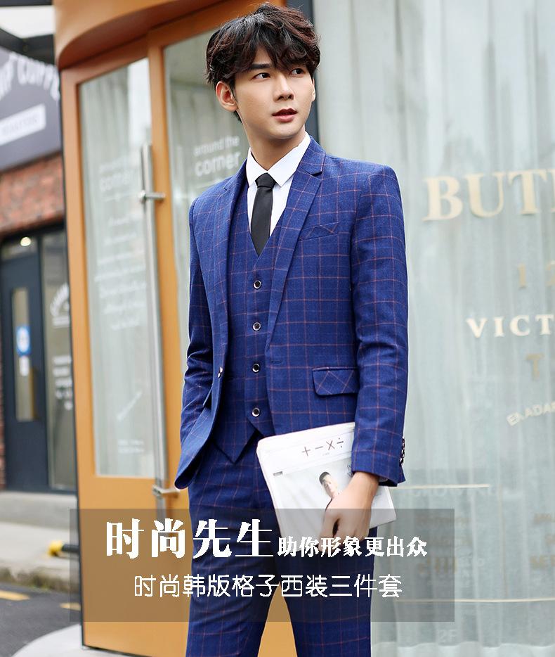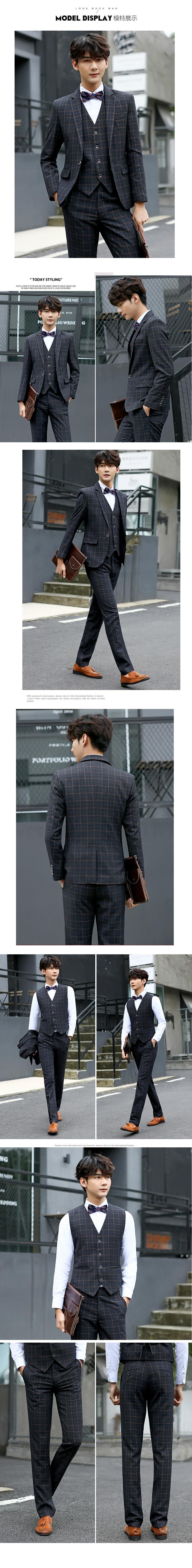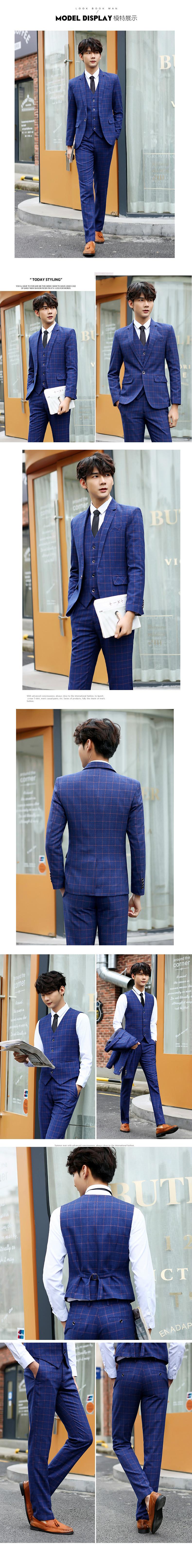 Traje de cuadros británicos traje Vestido de boda para hombre Traje de novio Traje para hombre Coreano Ajustado Casual de negocios