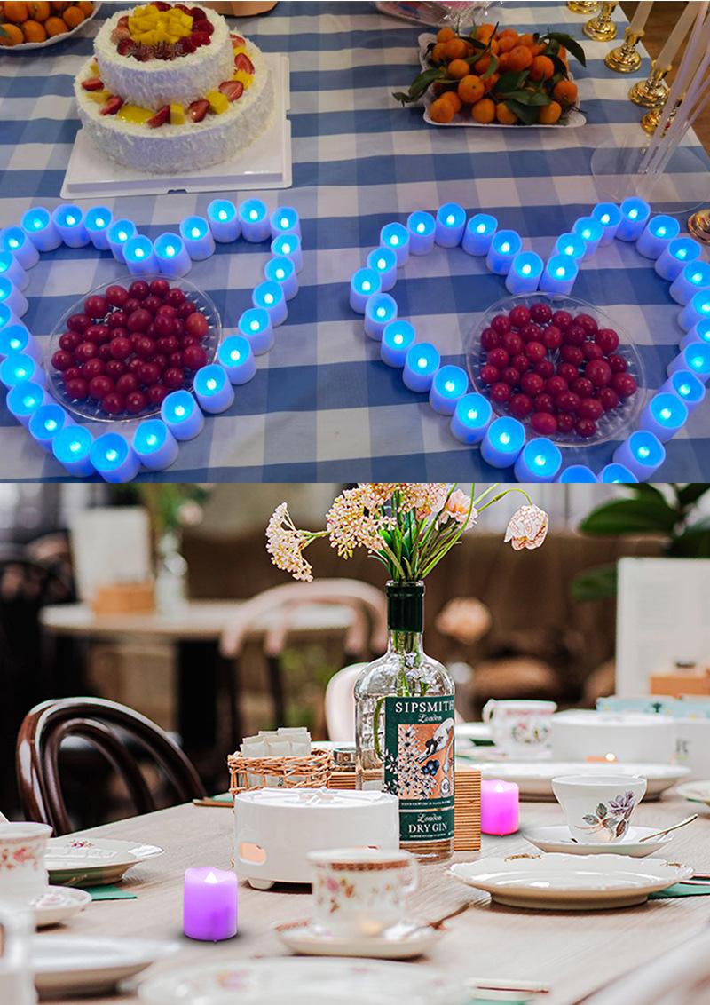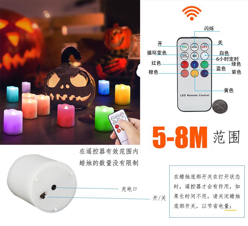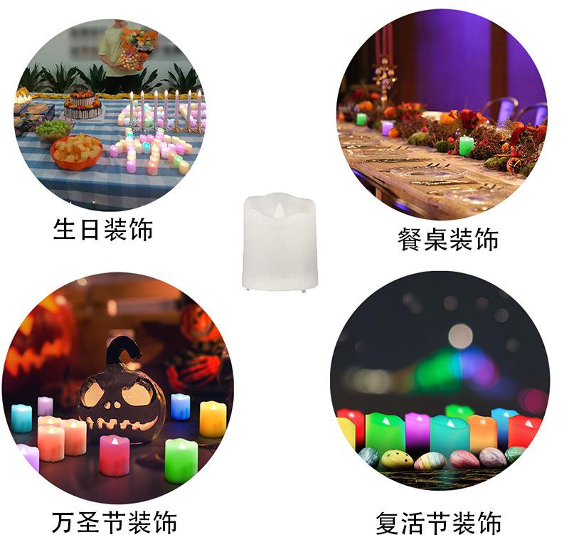 Función: Control remoto infrarrojo de temporización de 12 teclas, encendido/apagado remoto, temporización de ciclo de 6 horas, parpadeo, ciclo de color automático, rojo, naranja, amarillo, verde, blanco, azul, morado, la parte inferior de la vela viene con un botón de interruptor, encienda el interruptor en la parte inferior de la vela para que el control remoto funcione。
