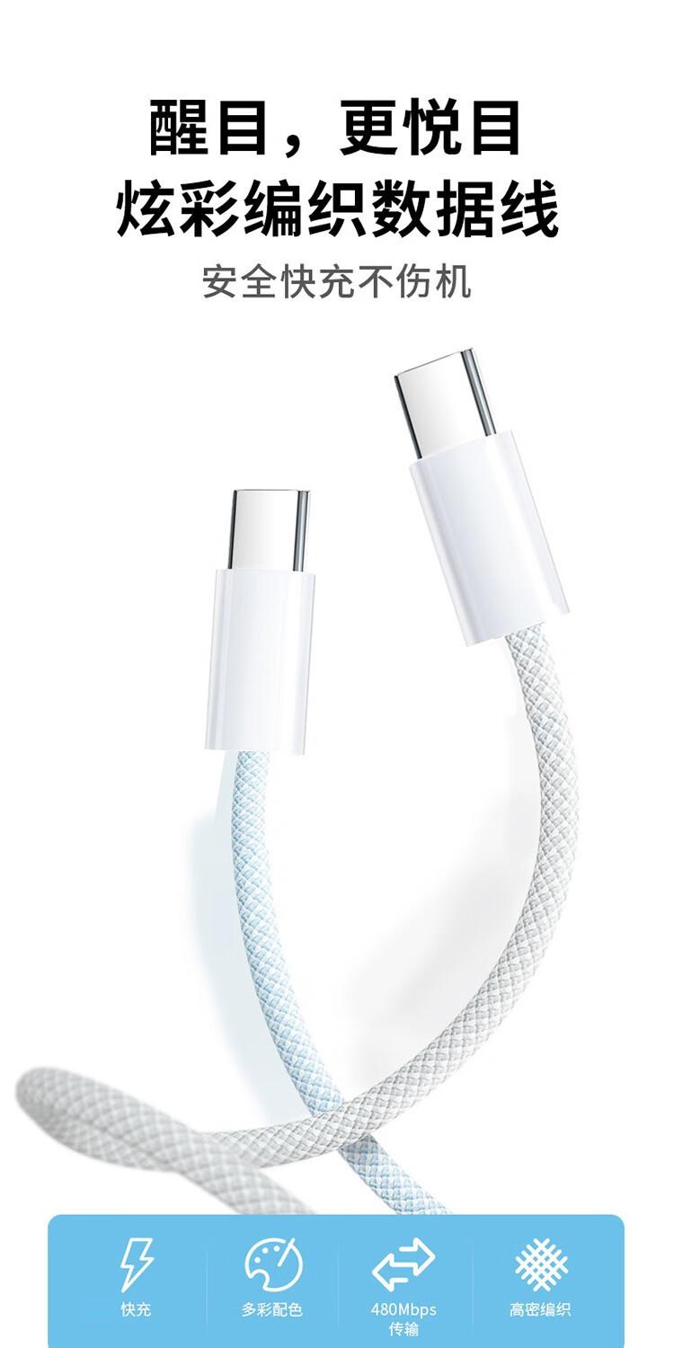 Cable de datos para teléfono móvil Apple 15, doble trenzado tipo C, carga rápida, compatible con iPhone 15 Pro, PD60W.
