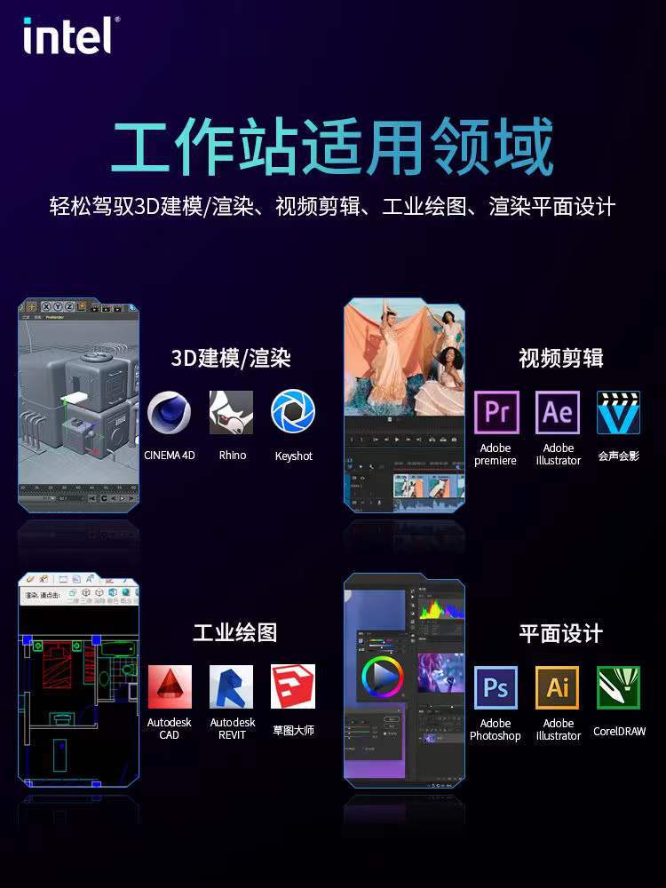 Intel i9-8G Office Learning Recommendation, Intel i9-16G 3D Design Recommendations, Intel i9-32G Design + Game Recommendation