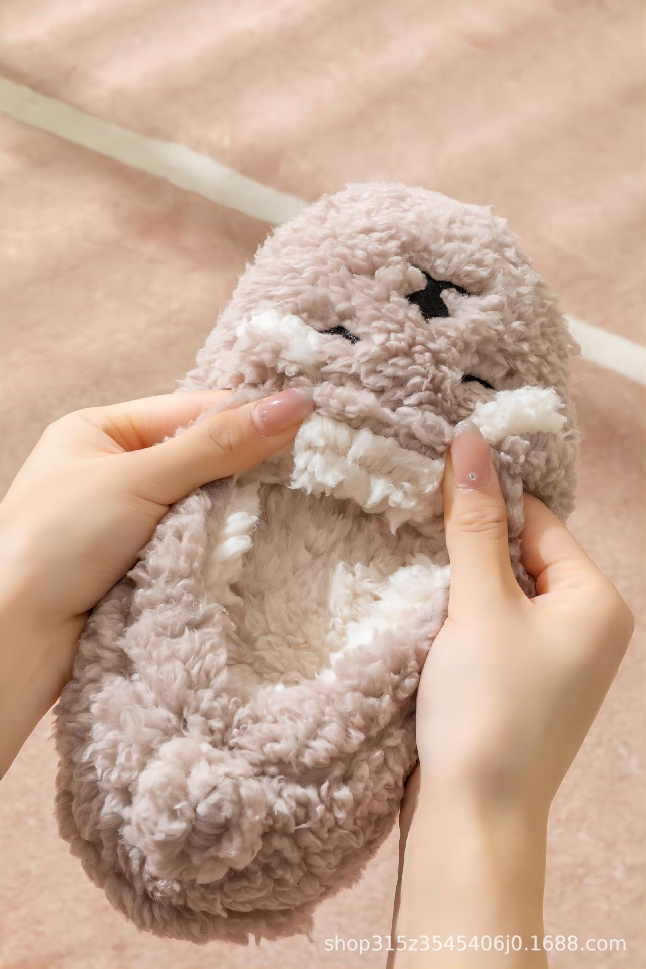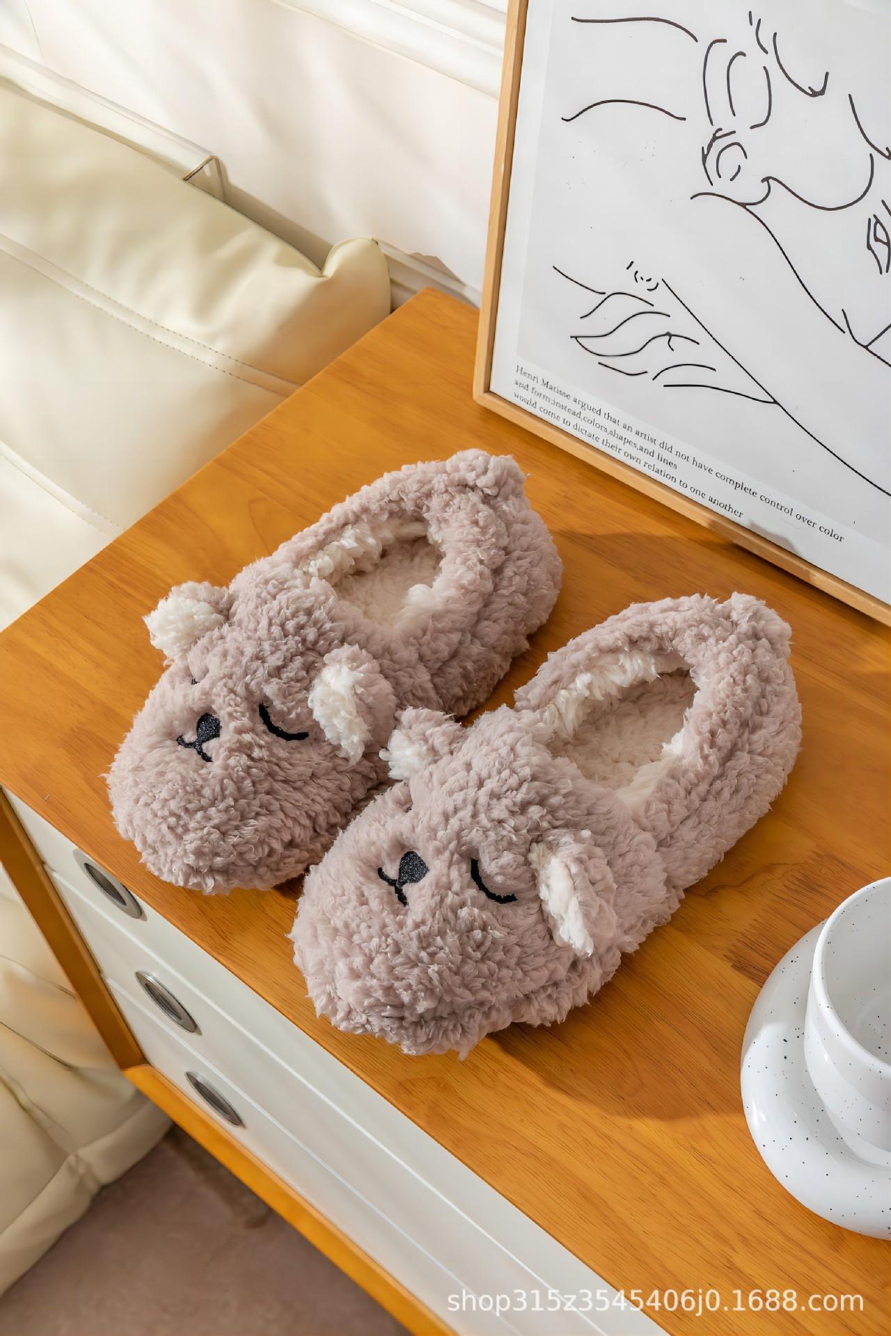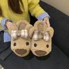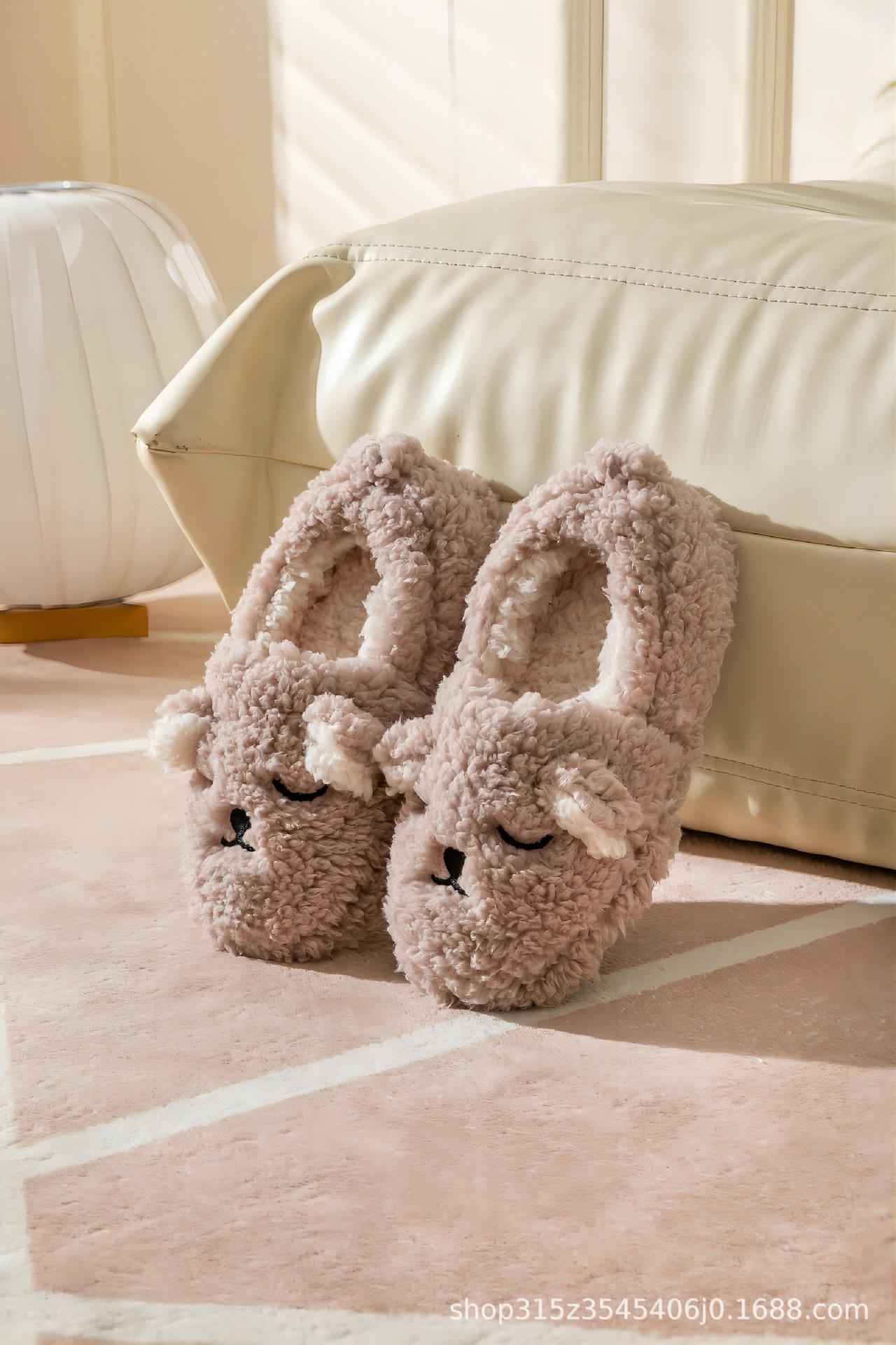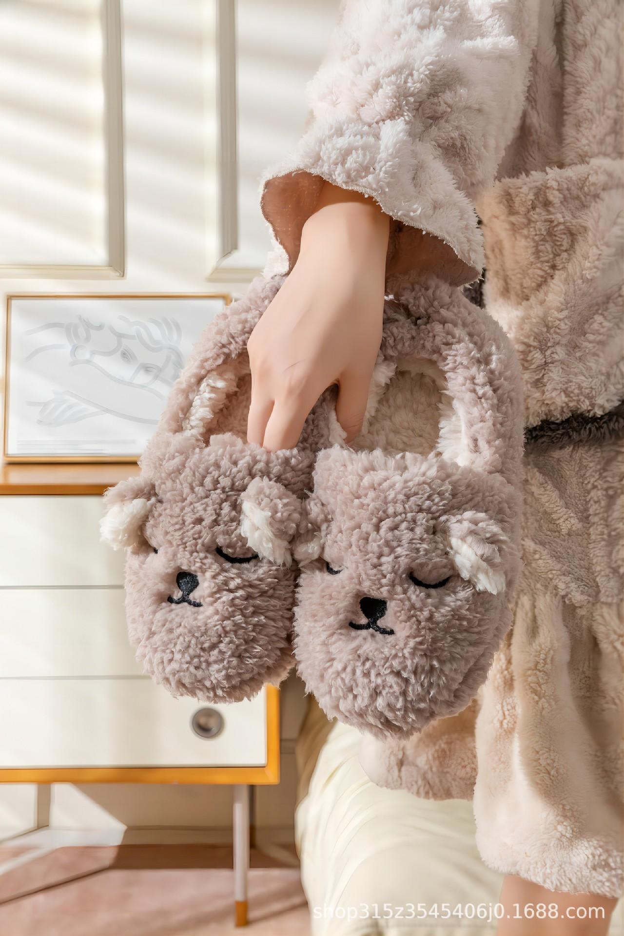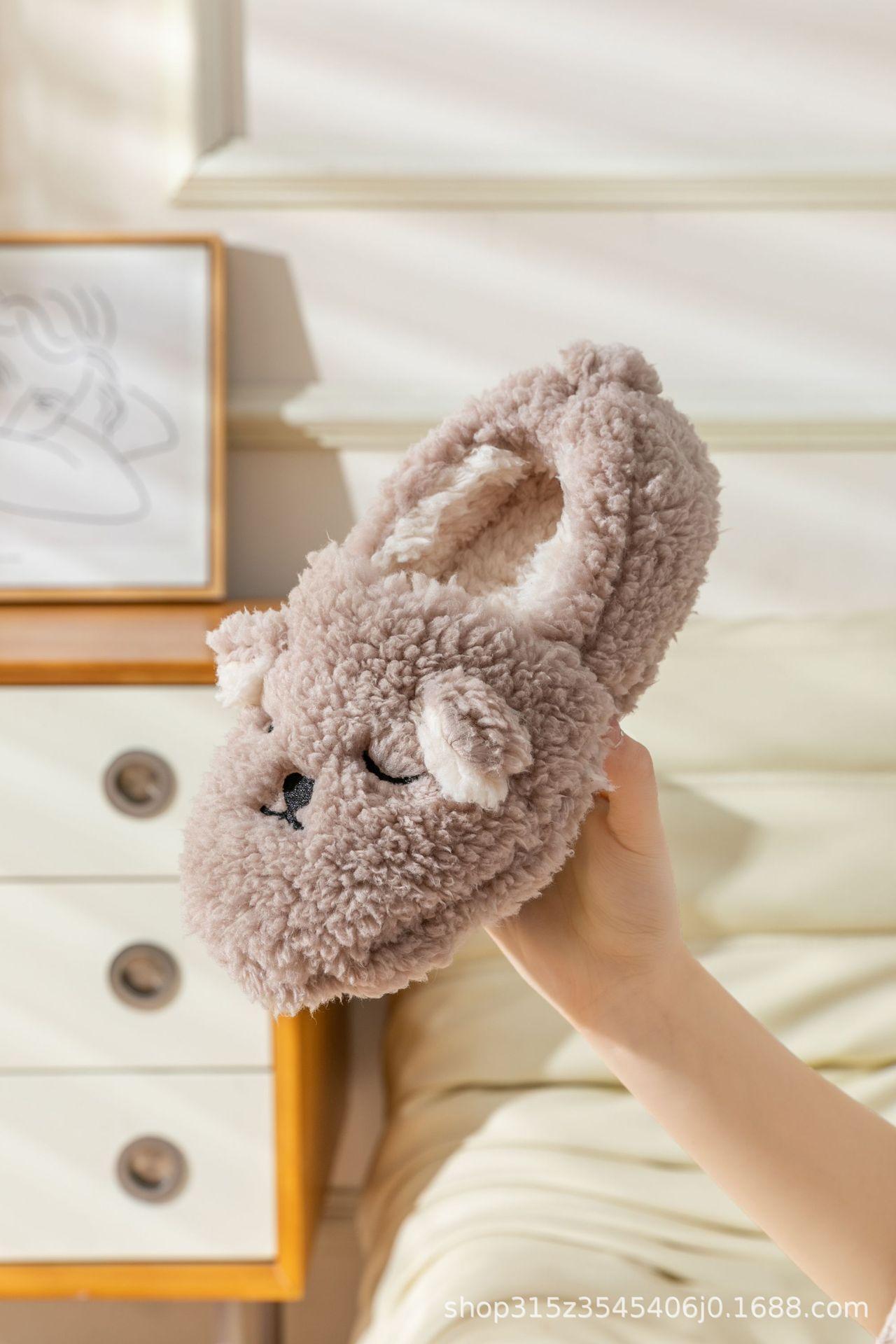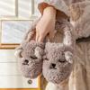Zapatillas de algodón para mujer, de nuevo estilo, para otoño e invierno, para interior y hogar, con tacón y bolsa, con dibujos de oso bonito, ligeras, cálidas y con punta cerrada