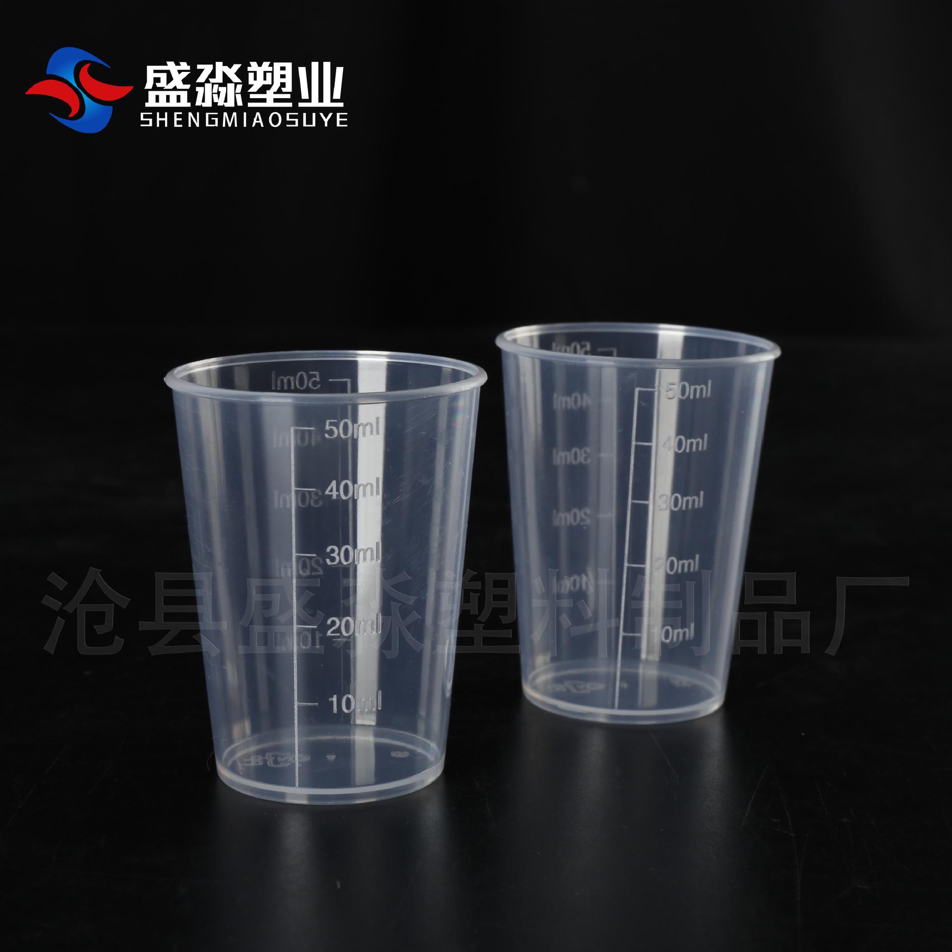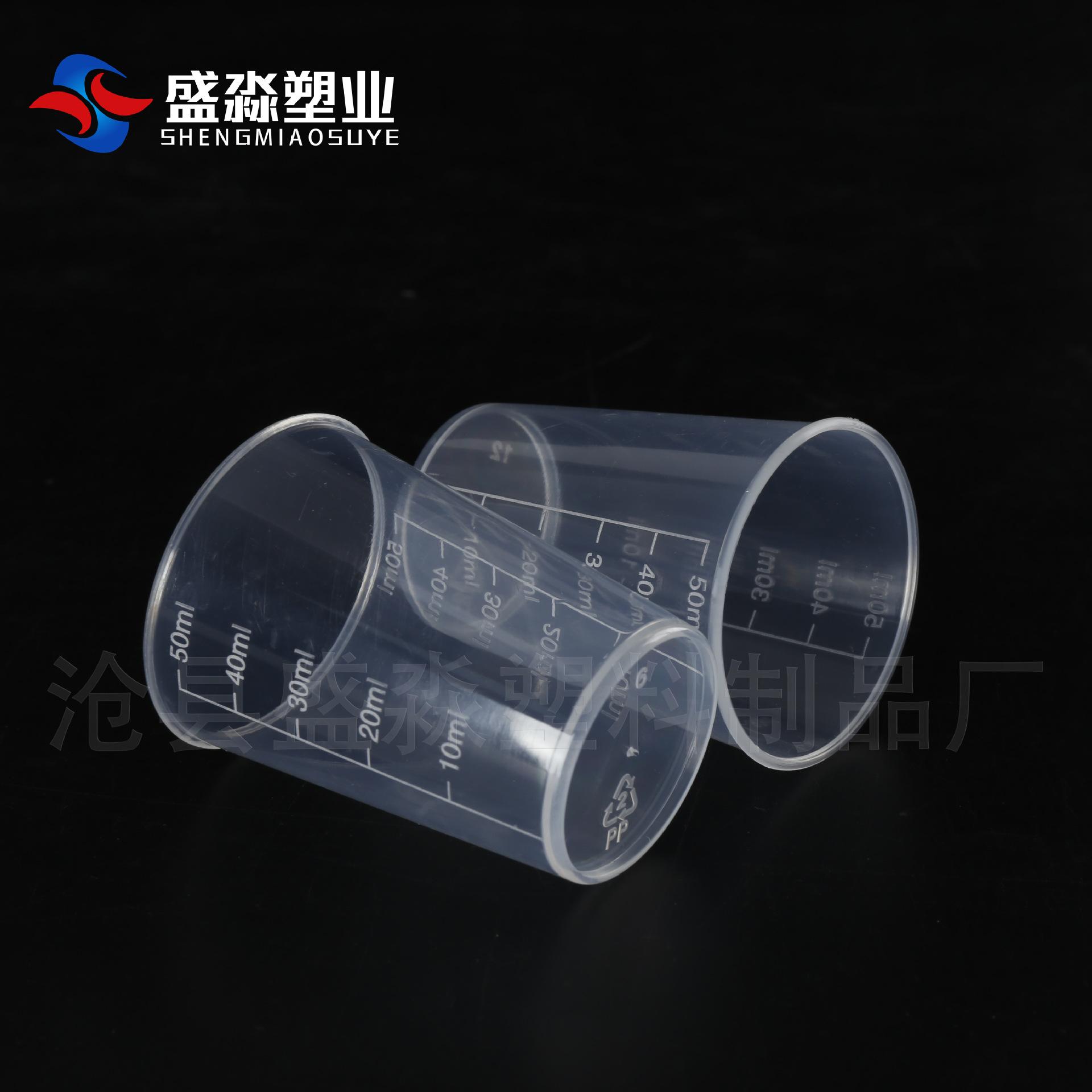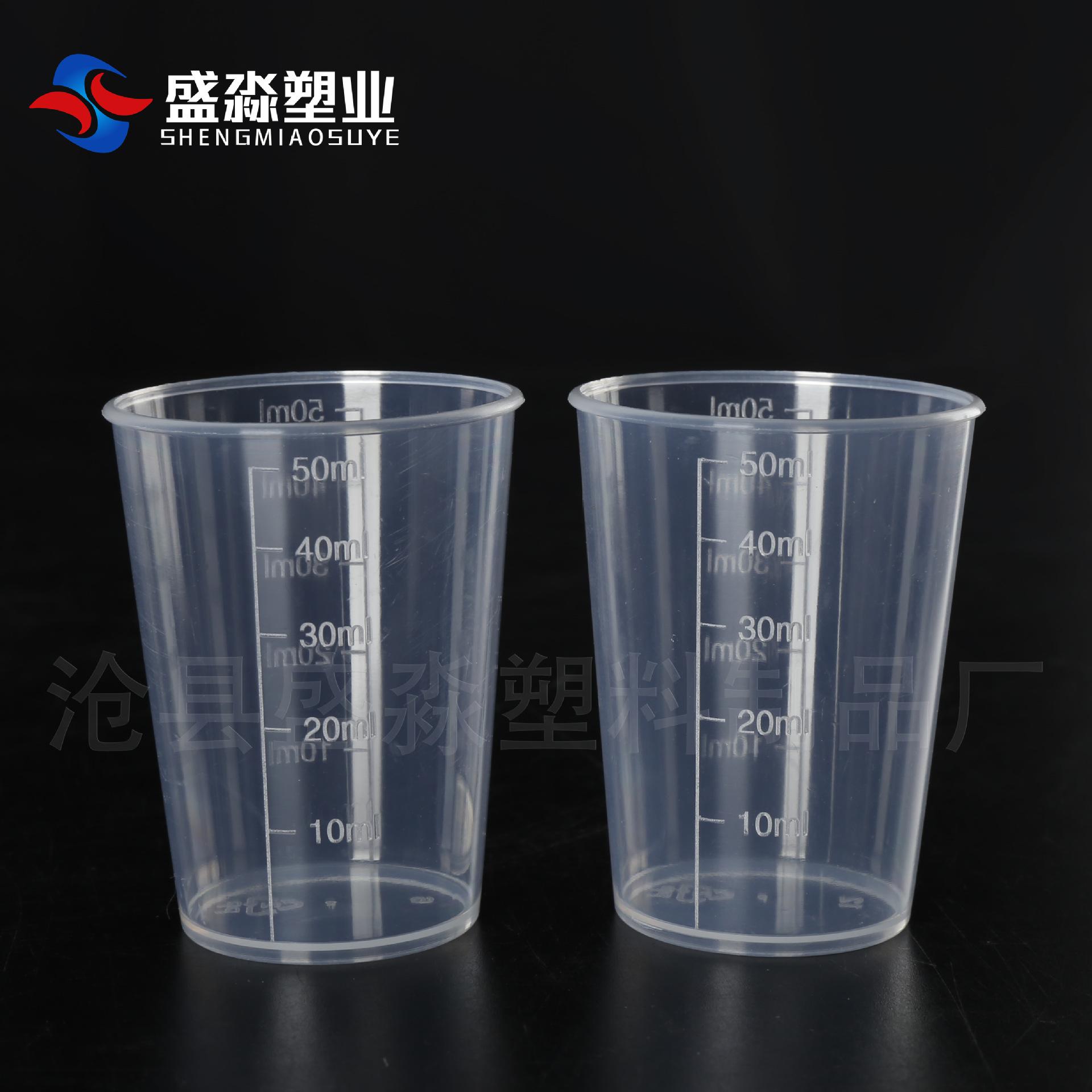 En stock, taza medidora de plástico de 50 ml, taza de escala de doble cara engrosada de boca ancha, fabricantes de tazas medidoras de laboratorio, cilindro medidor