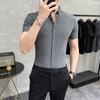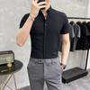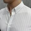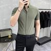 Camisa de hombre de manga corta coreana informal a rayas, corte entallado, estilo sencillo de verano 2025, para negocios