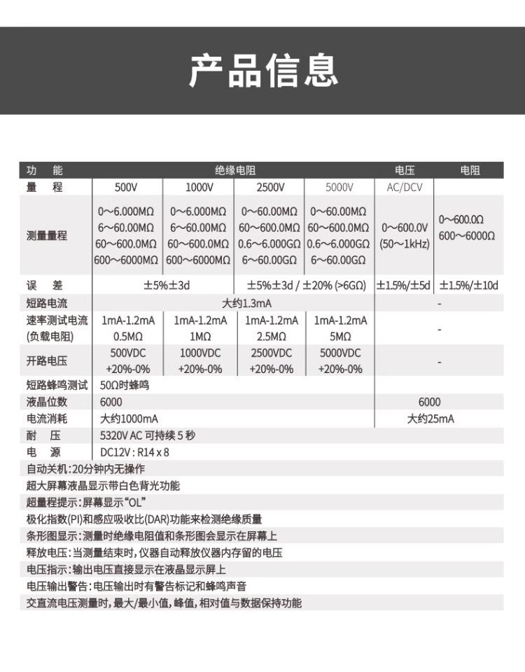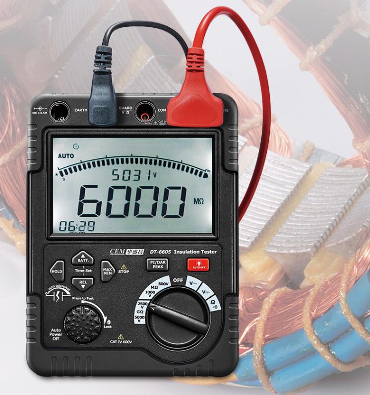 El comprobador profesional de resistencia de aislamiento de alto voltaje DT-6605 es un instrumento portátil. Se utiliza principalmente para medir voltaje CA/CC, resistencia, pruebas de zumbador de cortocircuito y resistencia de aislamiento.