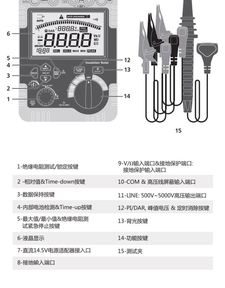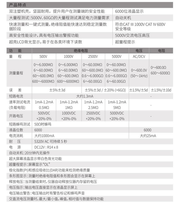 Tensión de prueba de aislamiento: 500 V, 1000 V, 1500 V, 5000 V
