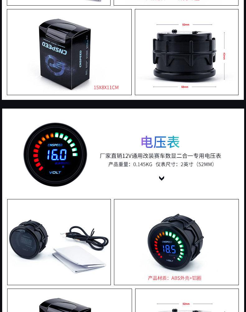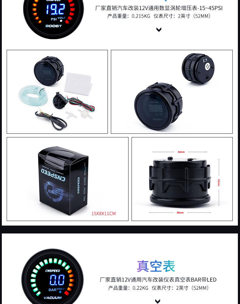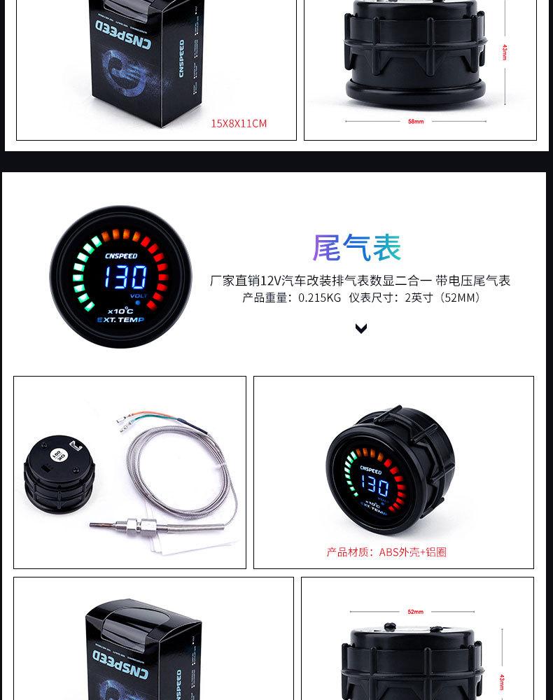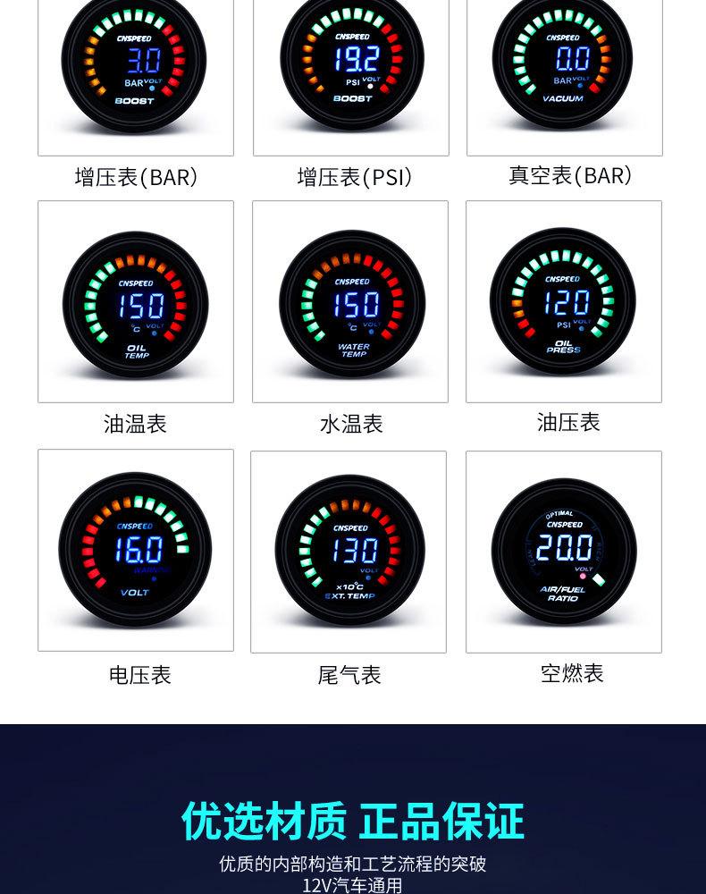 Medidor de escape universal de 2 pulgadas para modificación de automóvil, suministro directo de fábrica, 12 V (52 mm) Manómetro de presión de cola cargado dos en uno con pantalla digital