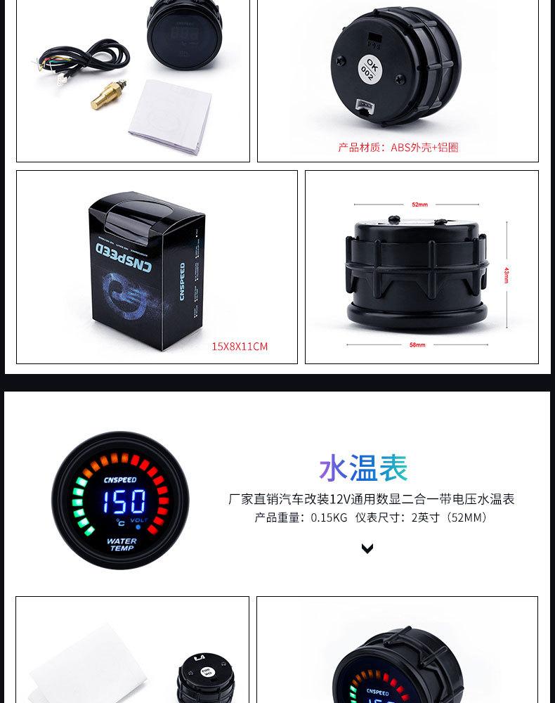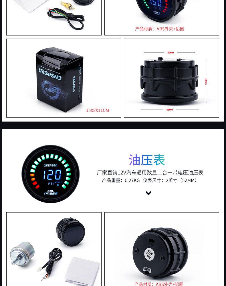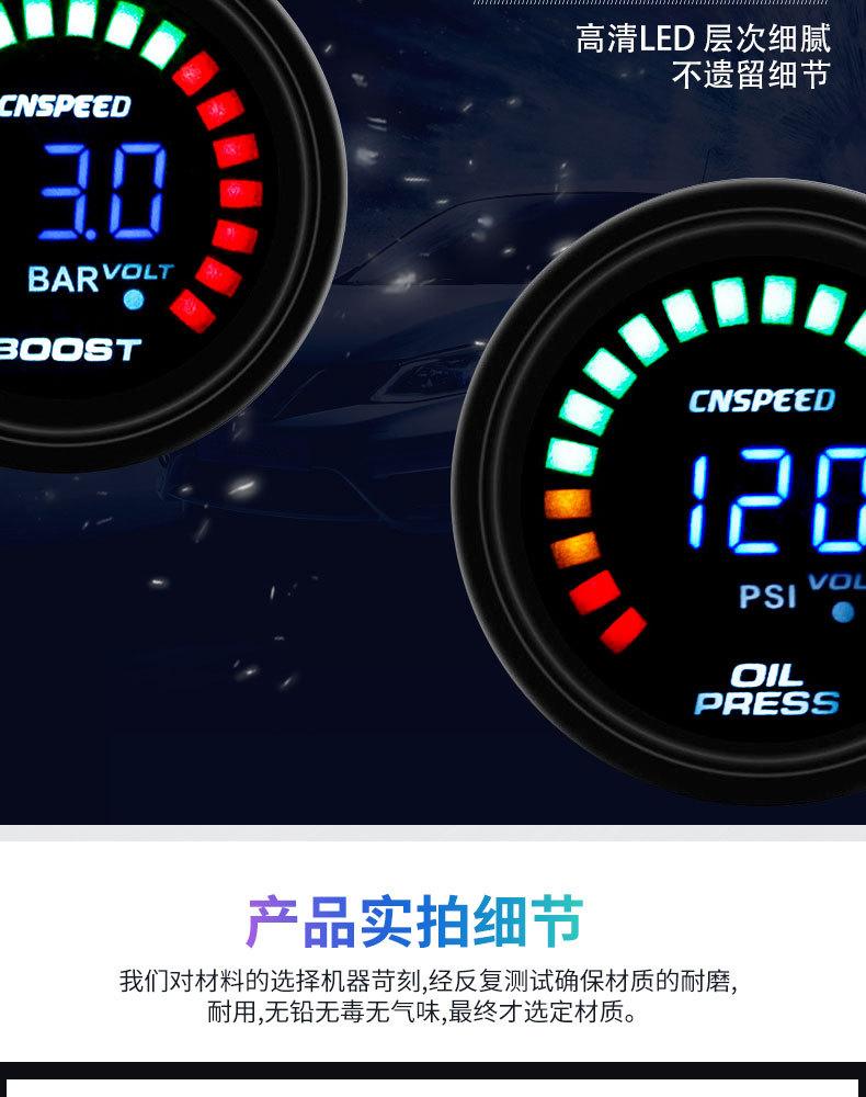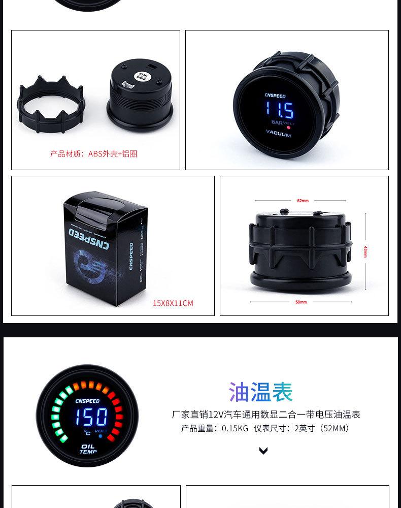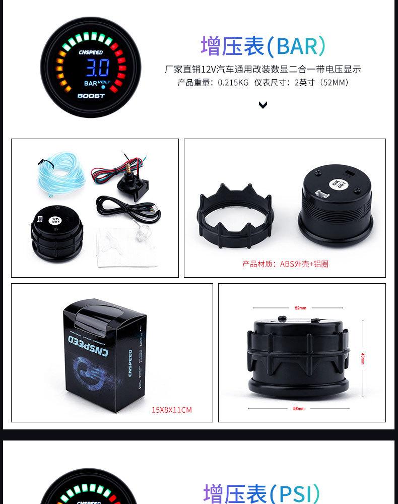 Medidor de escape universal de 2 pulgadas para modificación de automóvil, suministro directo de fábrica, 12 V (52 mm) Manómetro de presión de cola cargado dos en uno con pantalla digital