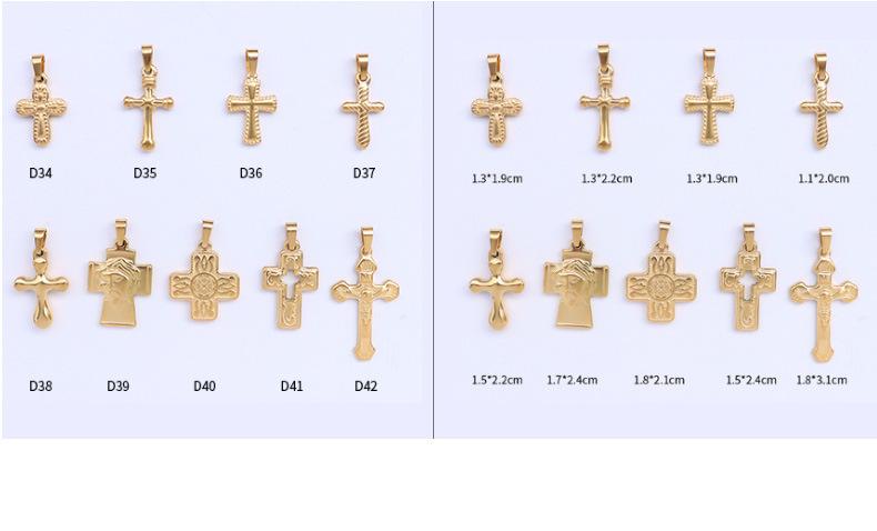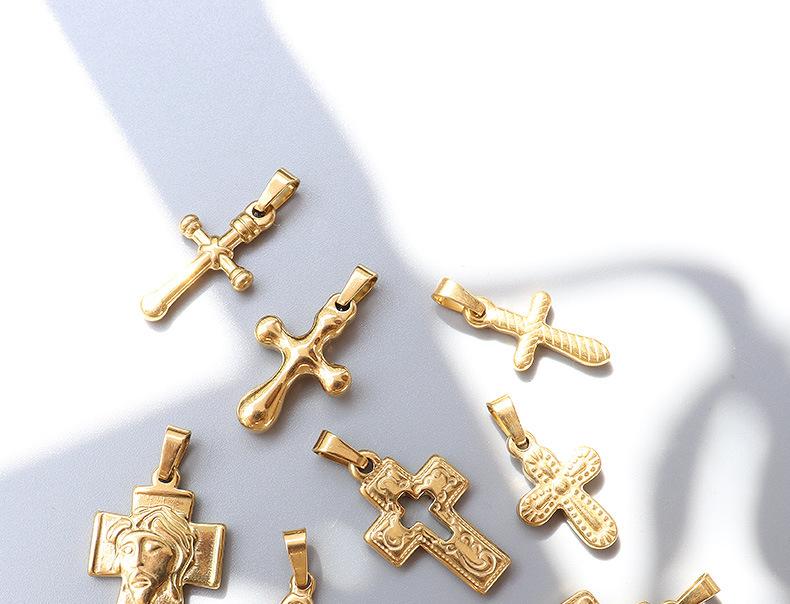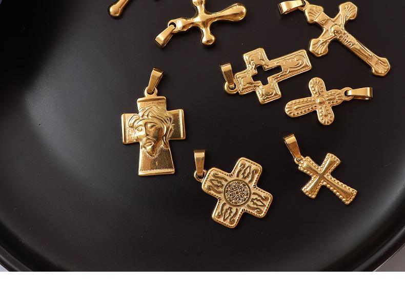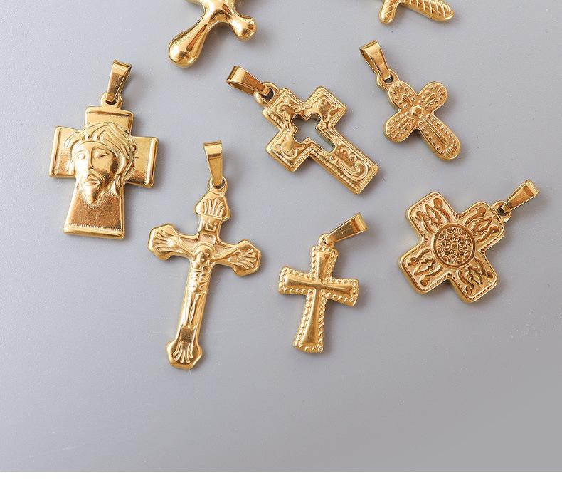 Colgante de cruz personalizado francés de gran venta, accesorios de joyería, colgante de acero de titanio chapado en oro de 18 quilates, colgante vintage a juego.