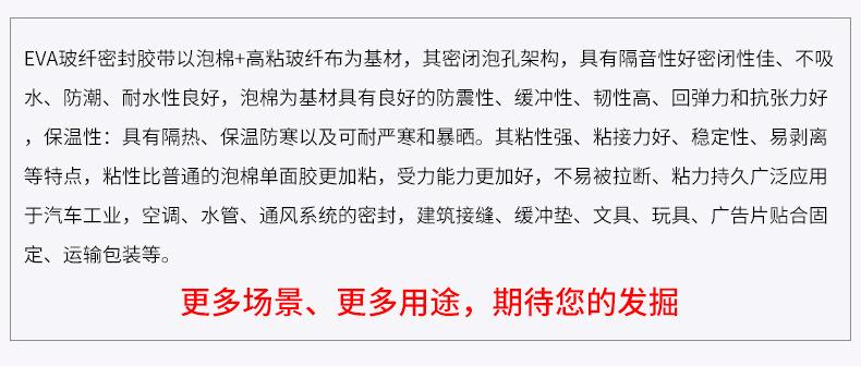 Cinta de espuma de fibra de vidrio de una sola cara EVA, fuerte adhesivo de espuma de algodón, esponja a prueba de golpes, tira adhesiva insonorizada, cinta adhesiva de alta resistencia.