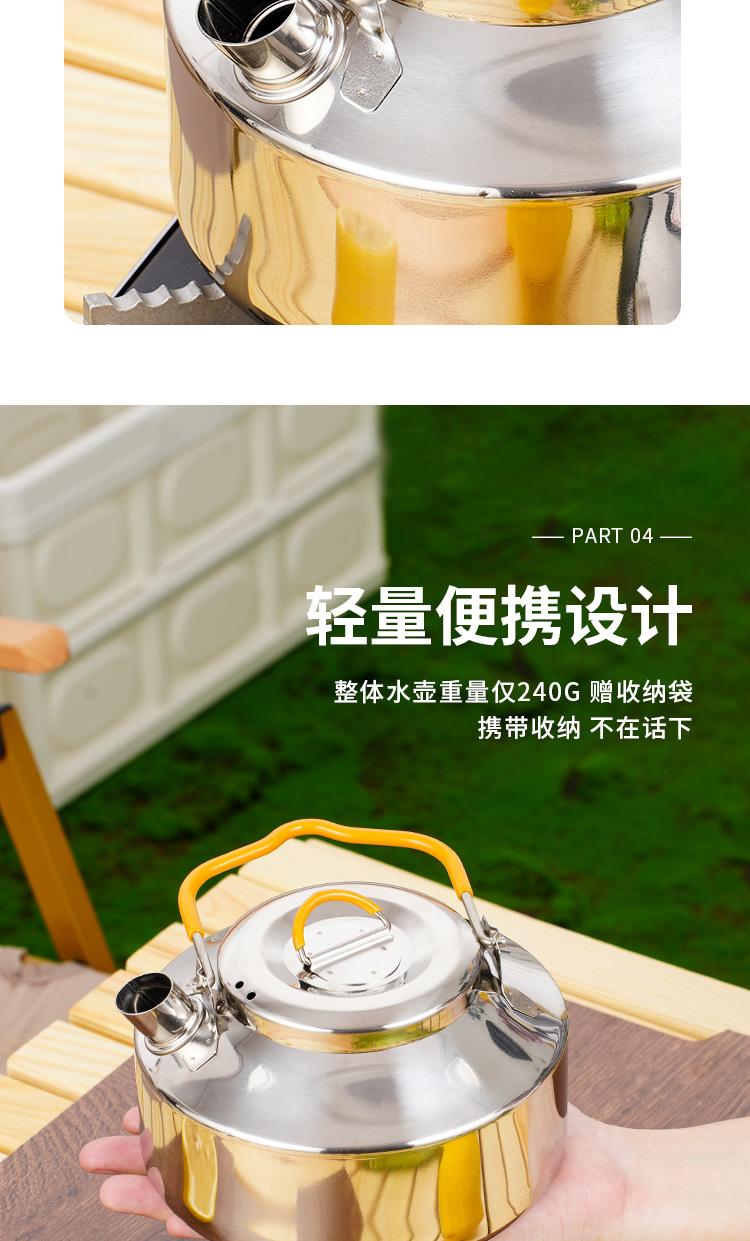 Hervidor para exteriores especial para té Tetera portátil para camping Tetera para estufa de tarjeta Camping Utensilios de cocina de acero inoxidable 304