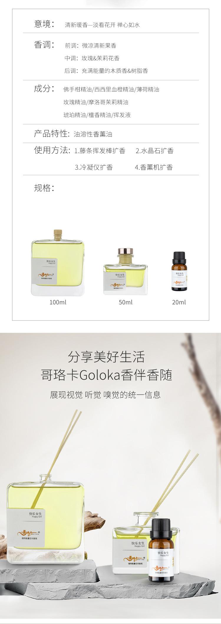 Aceite de aromaterapia Happy Girls, sin fuego, aceite esencial de aromaterapia, planta Geluoka, aromaterapia para el hogar, interior, coche, hotel.