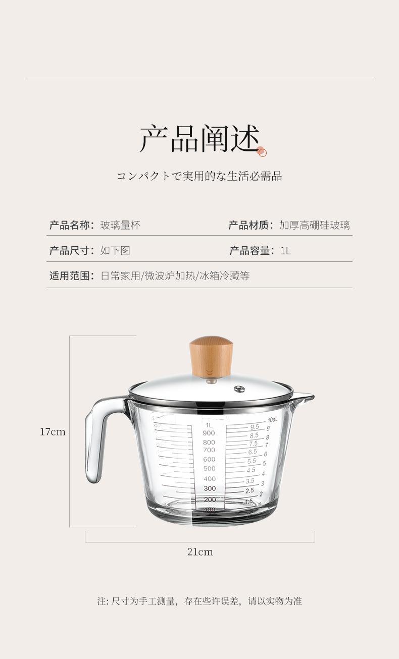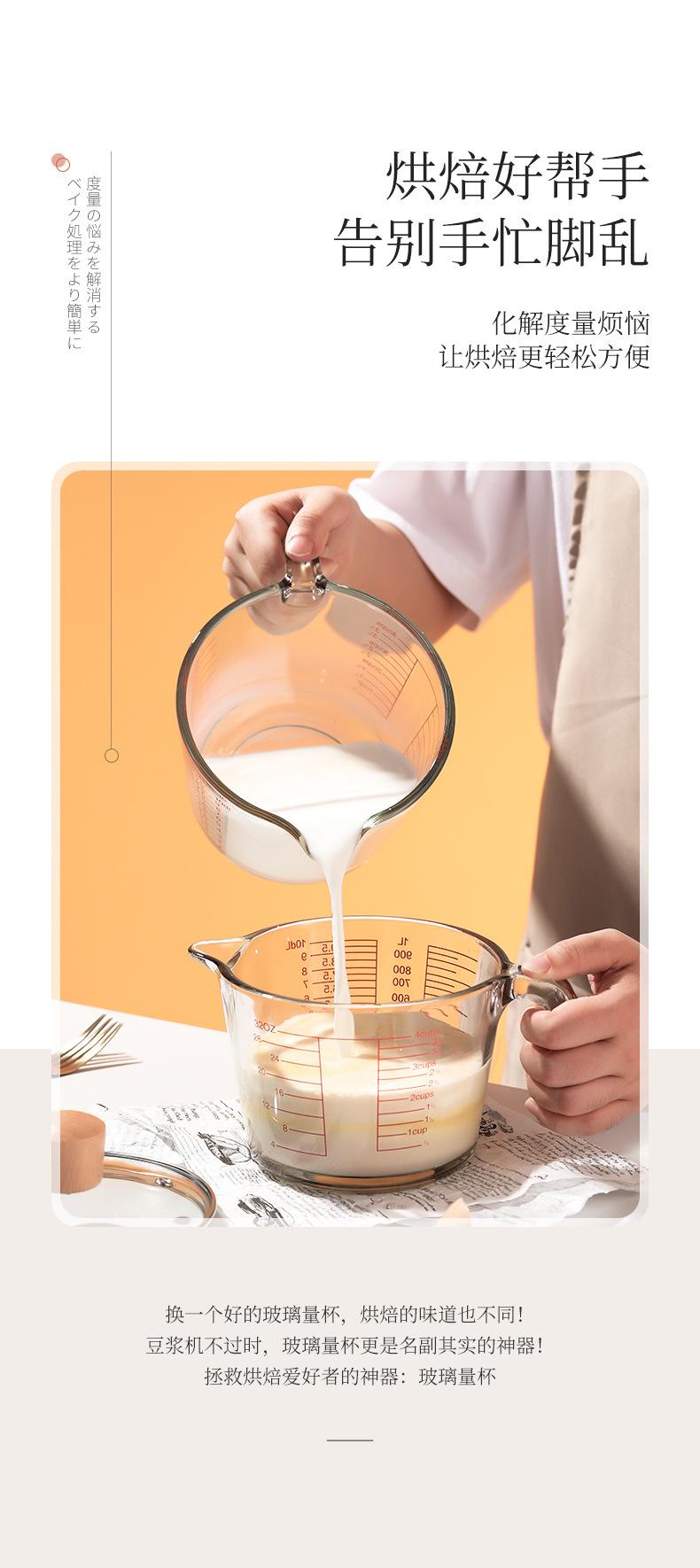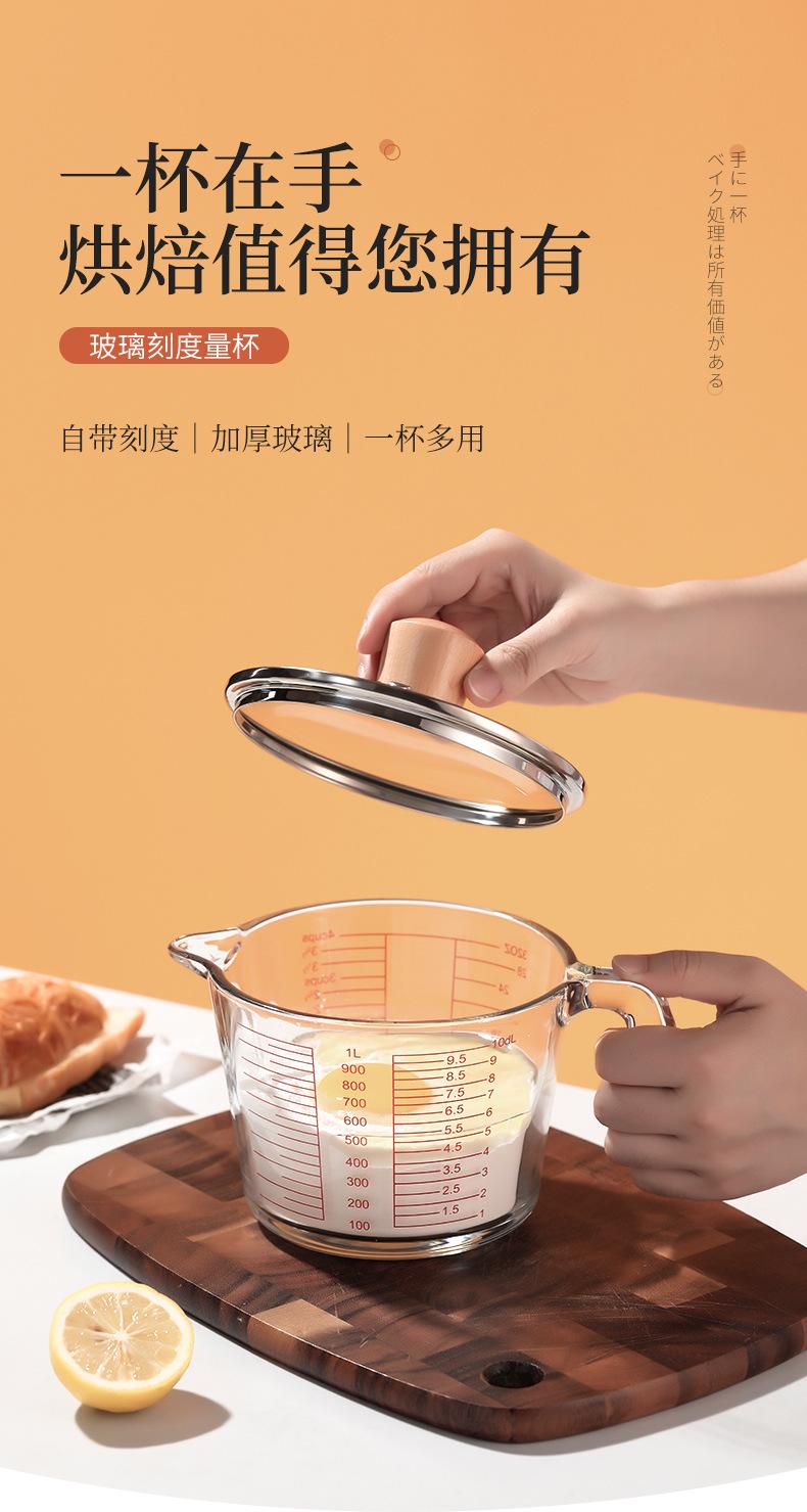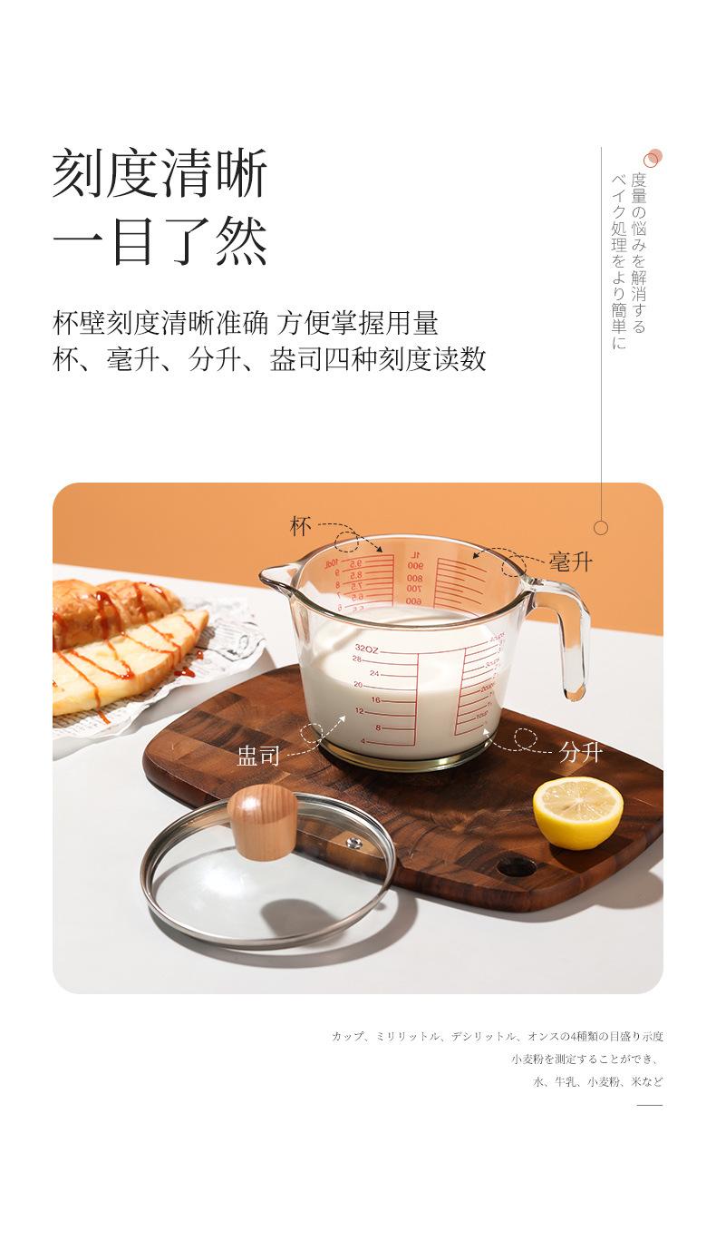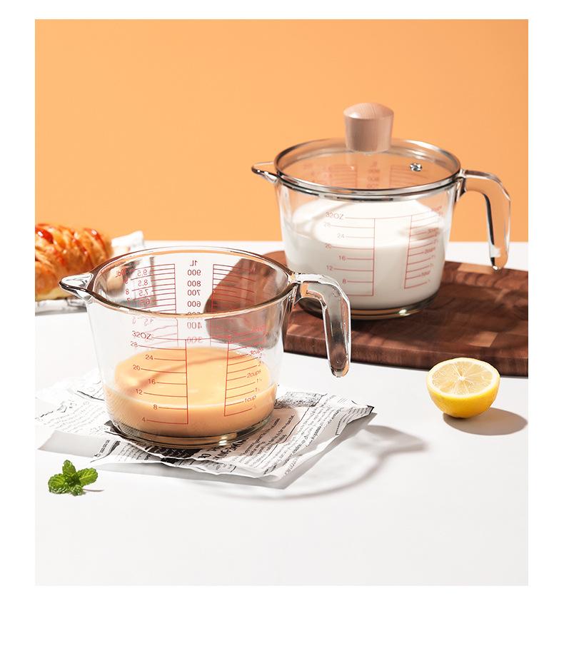 Taza medidora de vidrio de borosilicato para el hogar con tapa, herramienta para hornear, taza resistente a altas temperaturas con escala, taza para leche