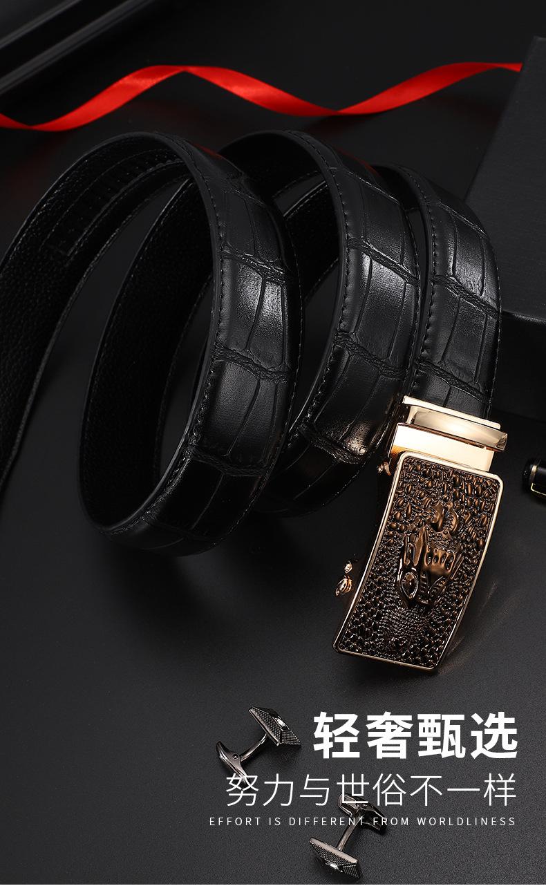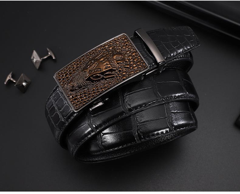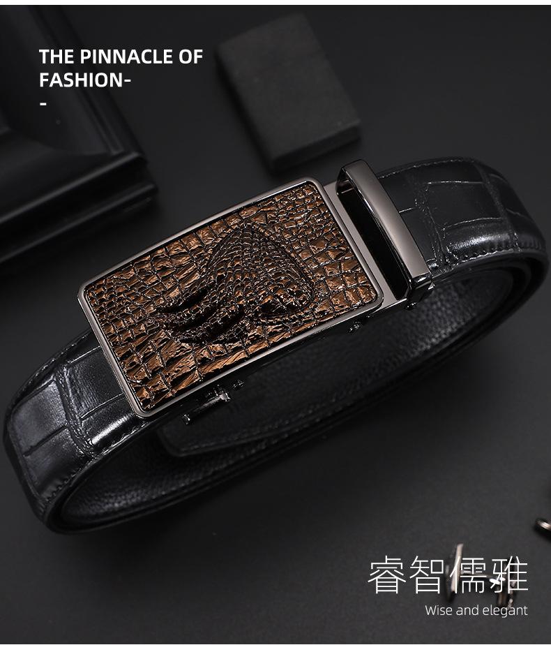 Cinturón de hebilla automática de cuero con patrón de cocodrilo Dandali para hombre, cinturón casual de piel de vaca de dos capas que combina con todo, cinturón para pantalones de negocios