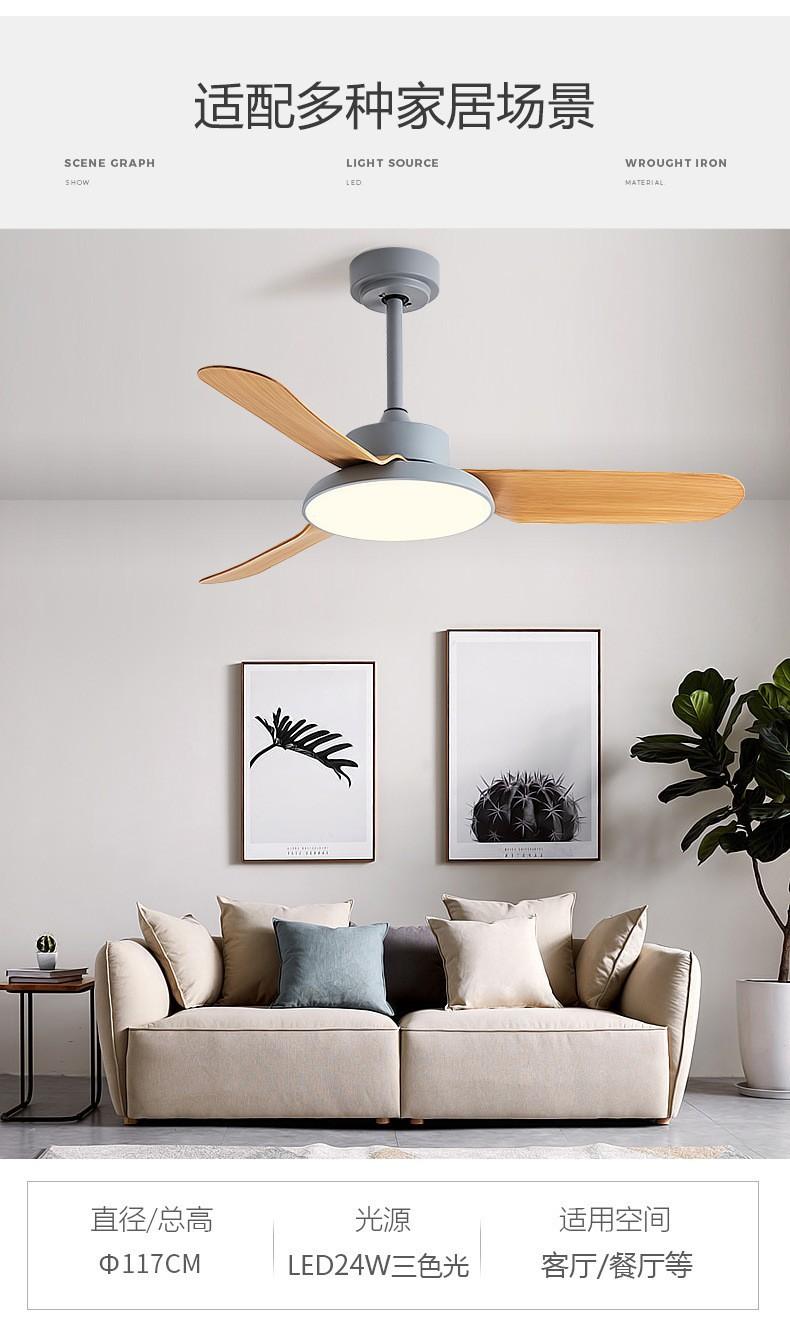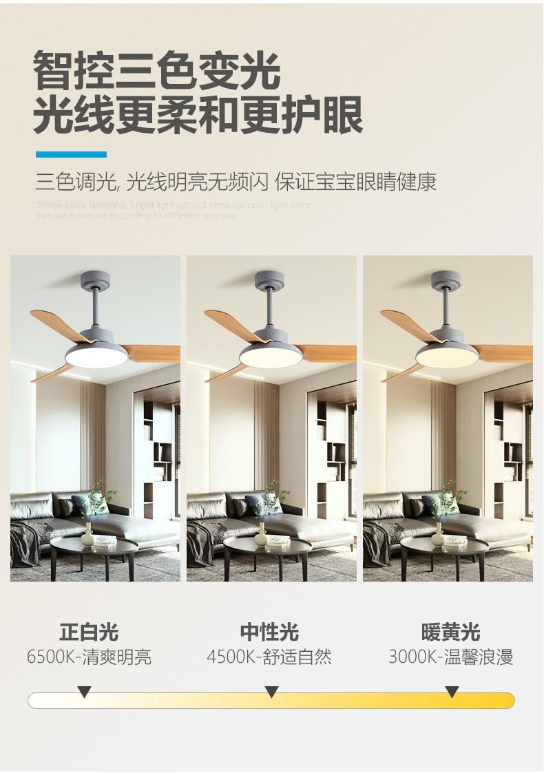 Nuevas luces de ventilador estroboscópicas de tres colores para restaurante, luces de ventilador silenciosas para sala de estar nórdica, luces de ventilador de techo con control remoto inteligente