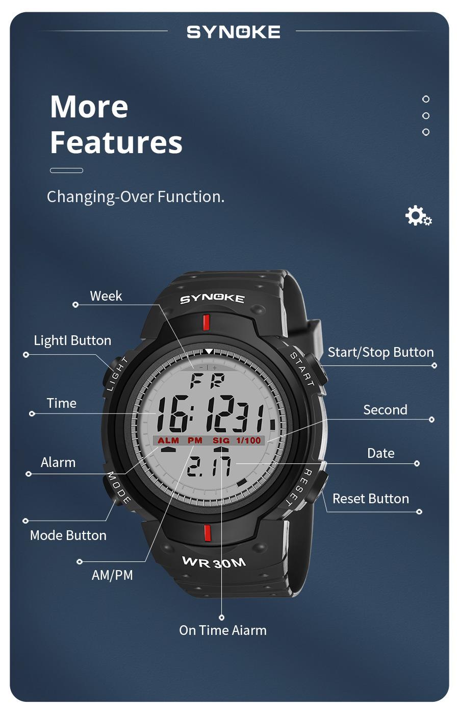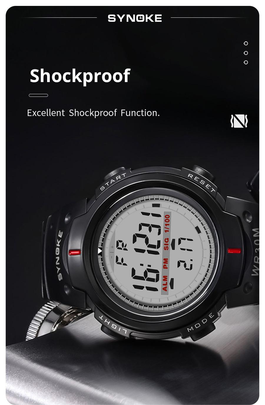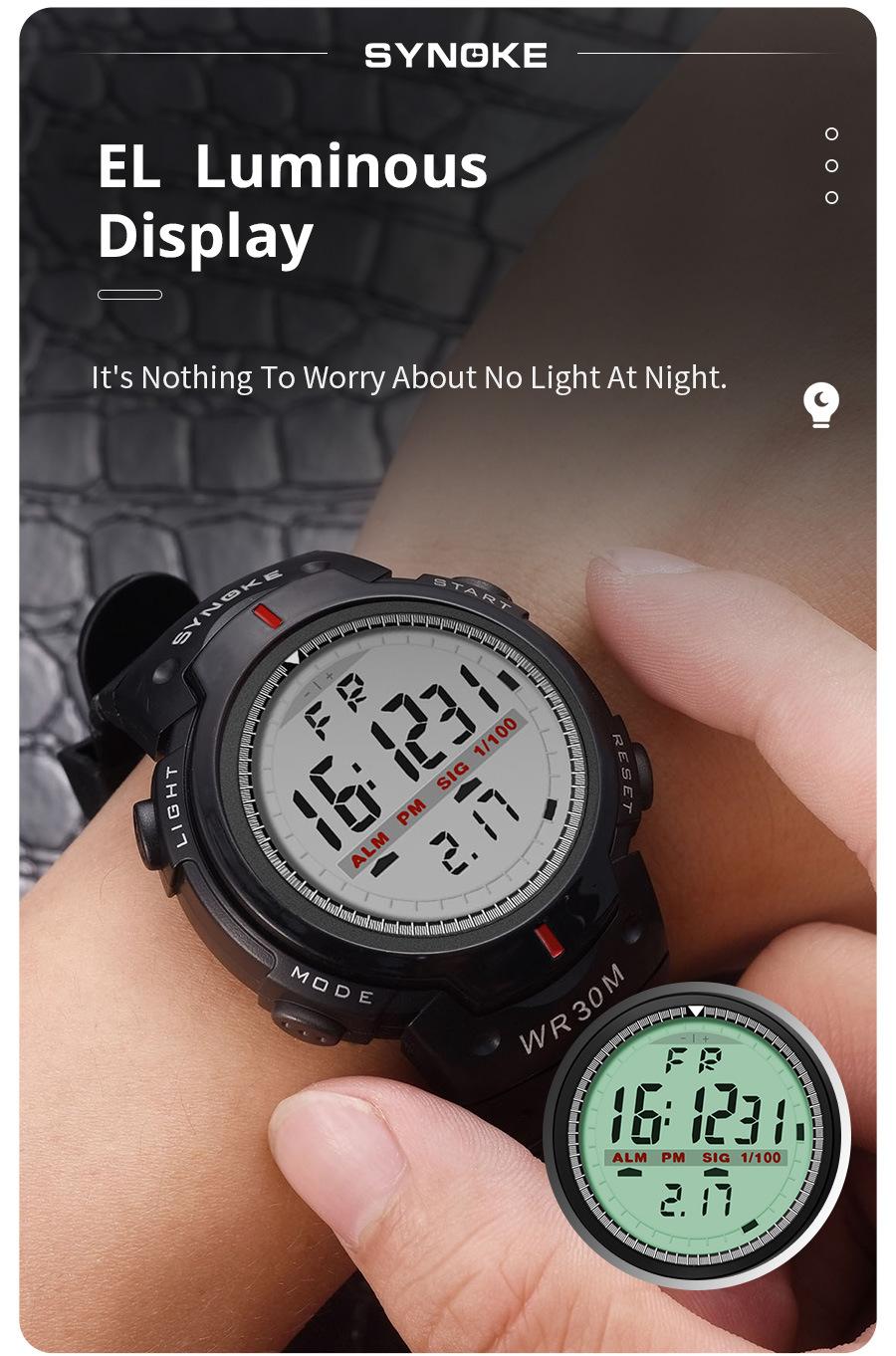 Reloj electrónico SYNOKE Deportivo para hombre resistente al agua multifuncional para montañismo al aire libre pantalla grande diseño retro clásico