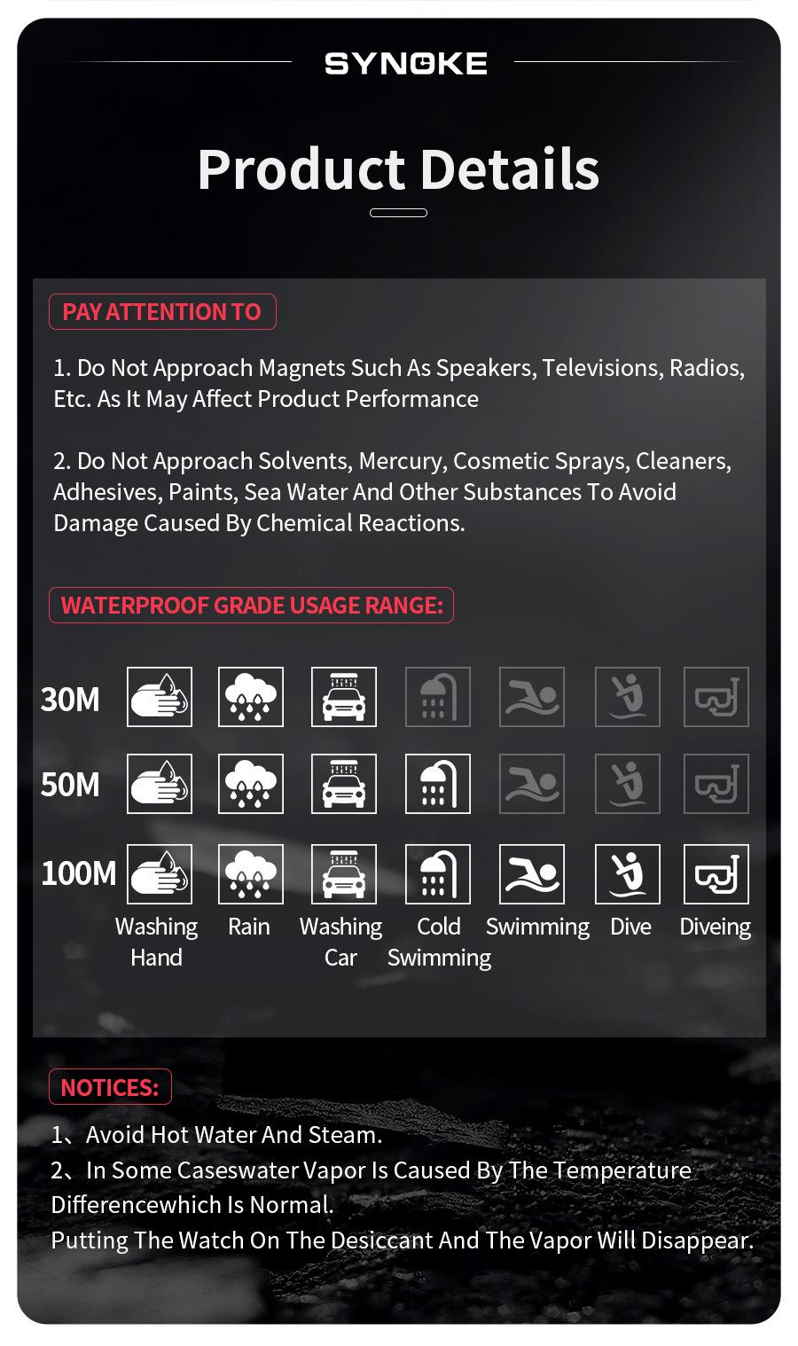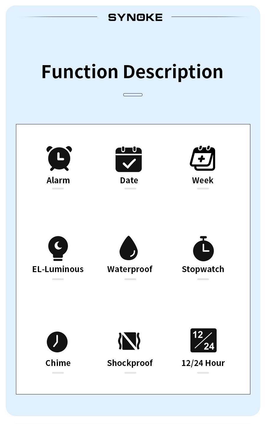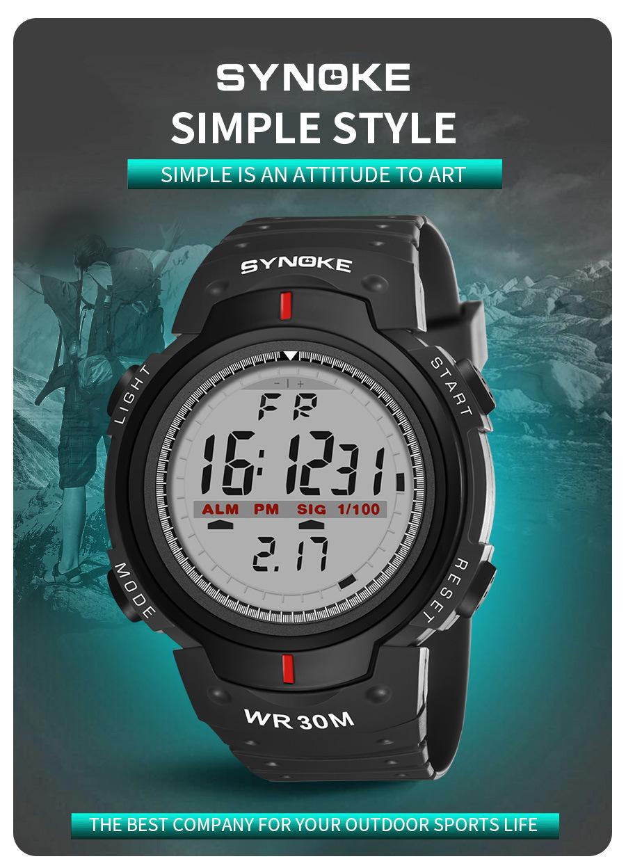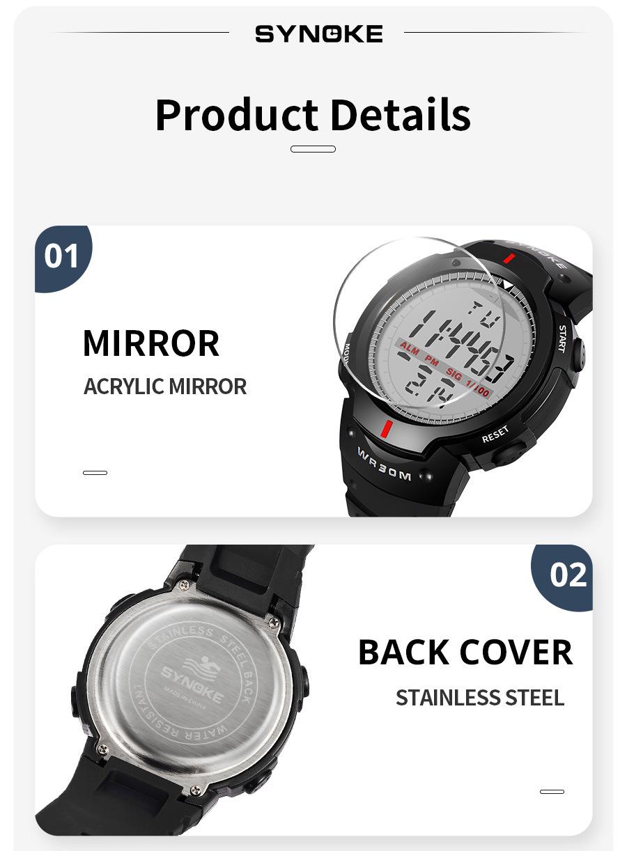 Reloj electrónico SYNOKE Deportivo para hombre resistente al agua multifuncional para montañismo al aire libre pantalla grande diseño retro clásico