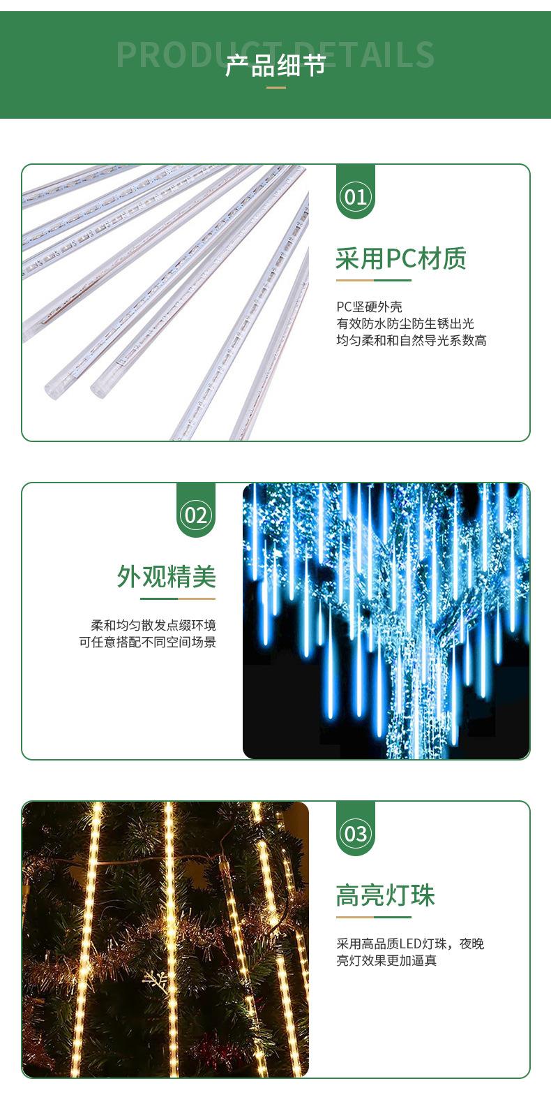 Cadena de luces LED solares impermeables para exteriores, con lluvia de meteoritos, para decoración navideña y de jardín