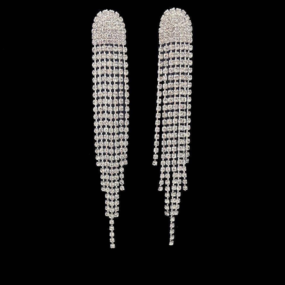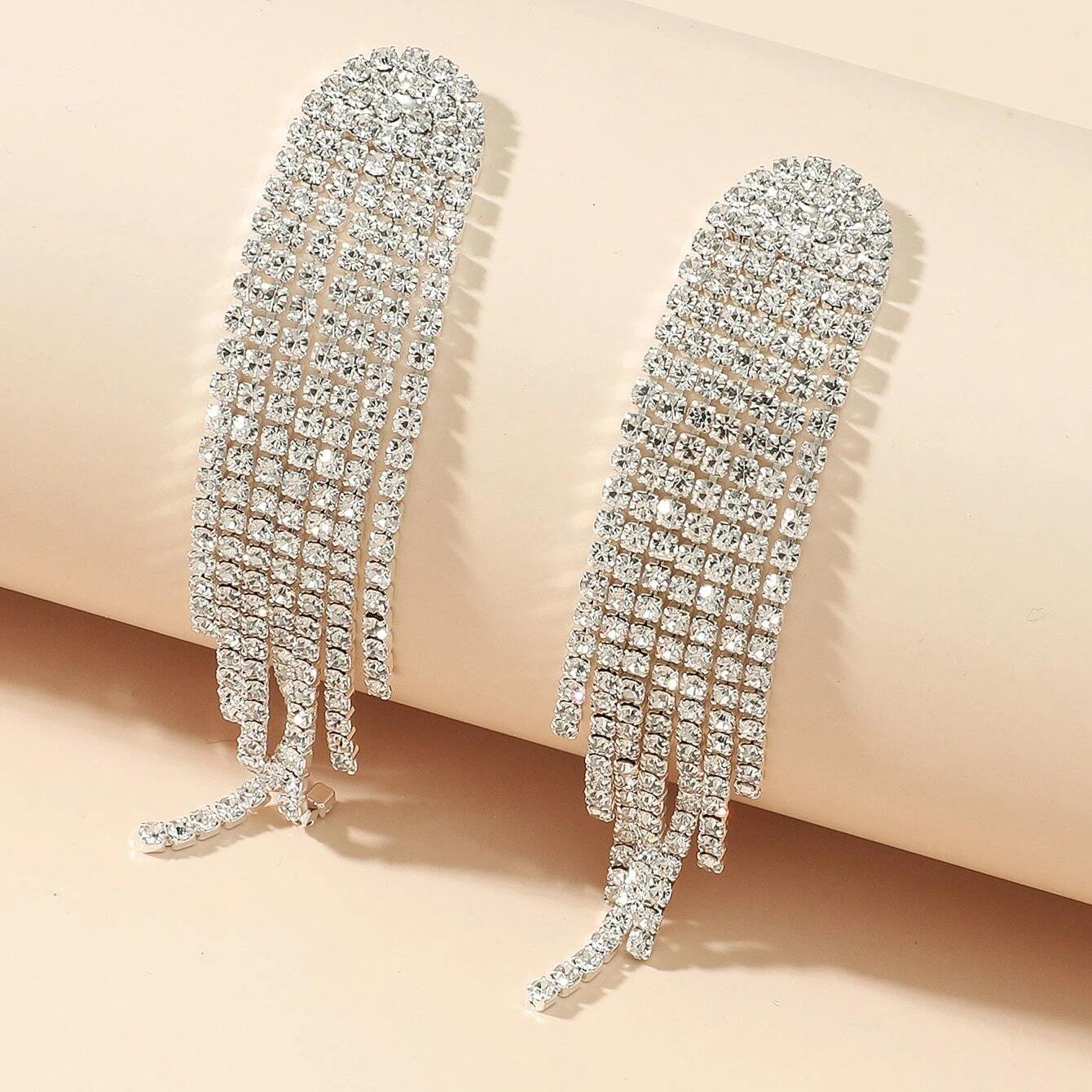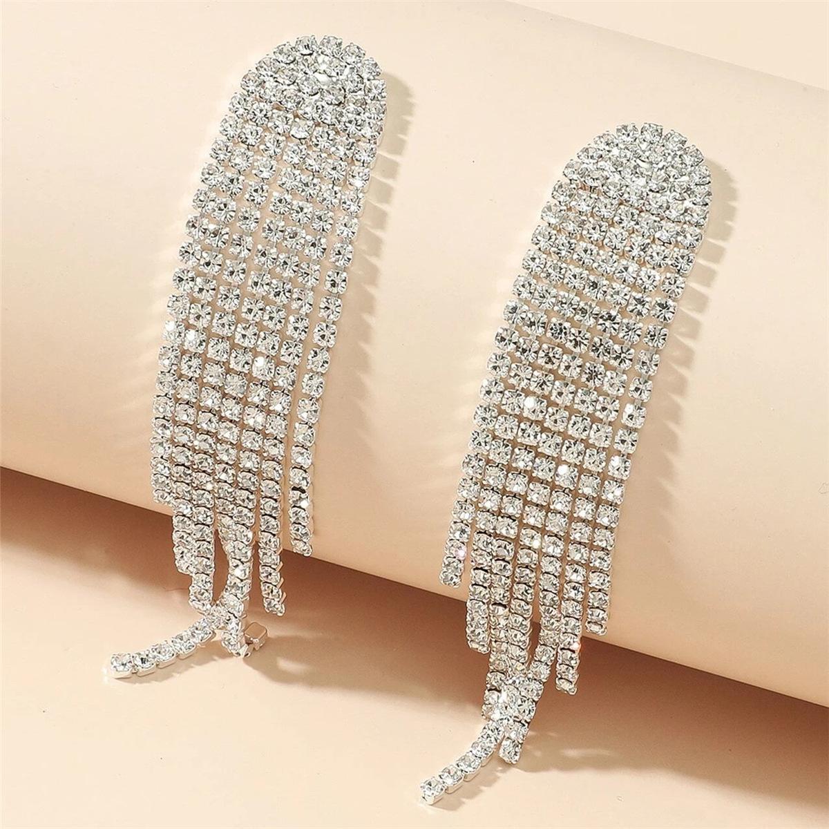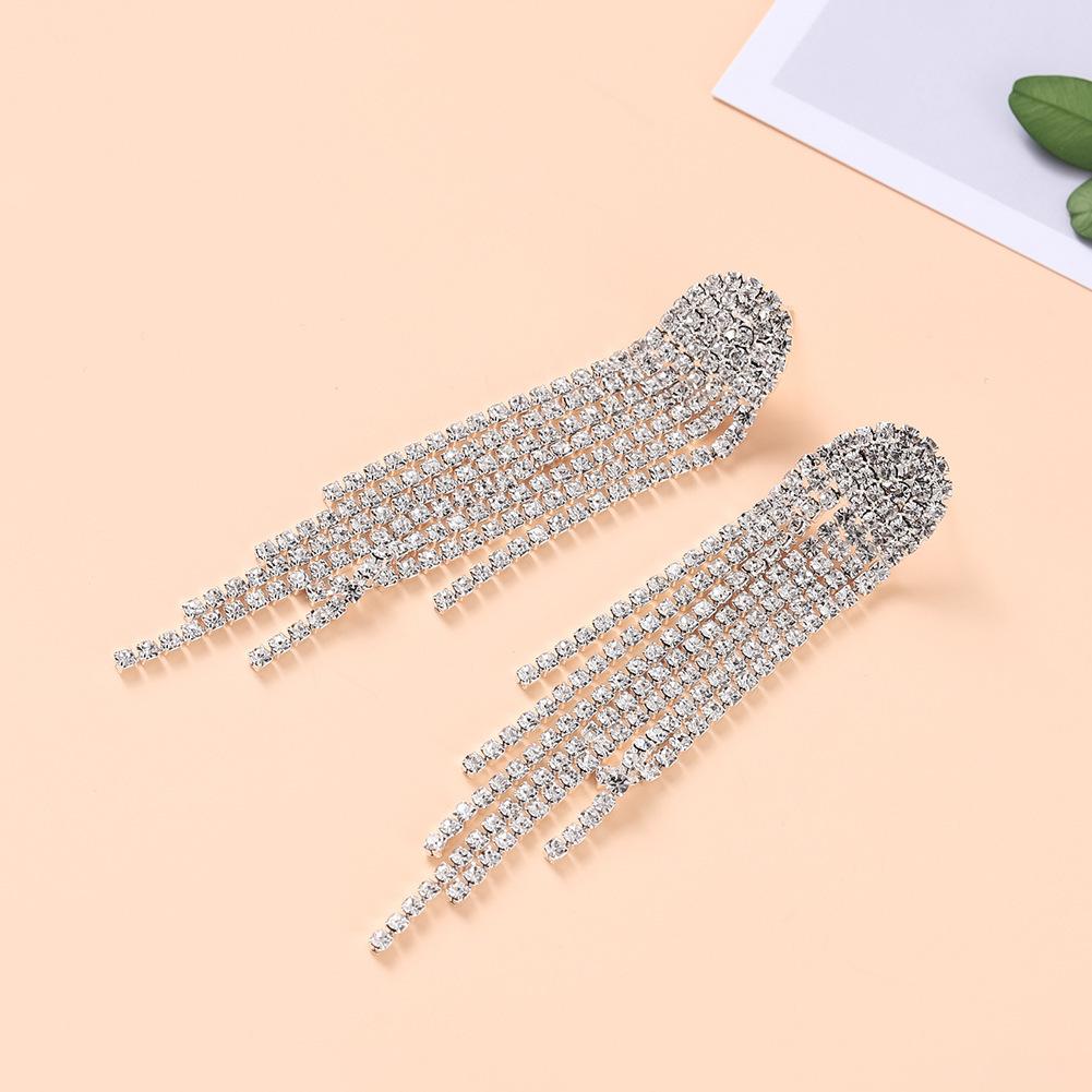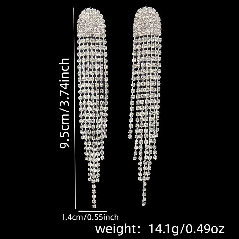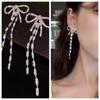 Pendientes de novia para banquete de boda, joyería europea y americana, pendientes geométricos largos con borlas de diamantes de imitación, E7942
