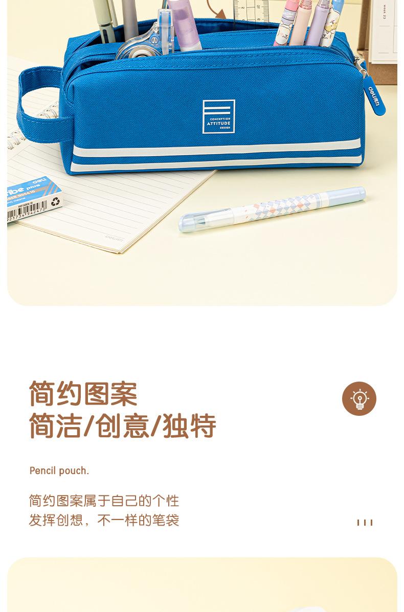 Deli Stationery 66772 Bolsa para Lápices de Doble Capa de Gran Capacidad Bolsa para Lápices de Color Sólido Bolsa de Lona Simple para Estudiantes