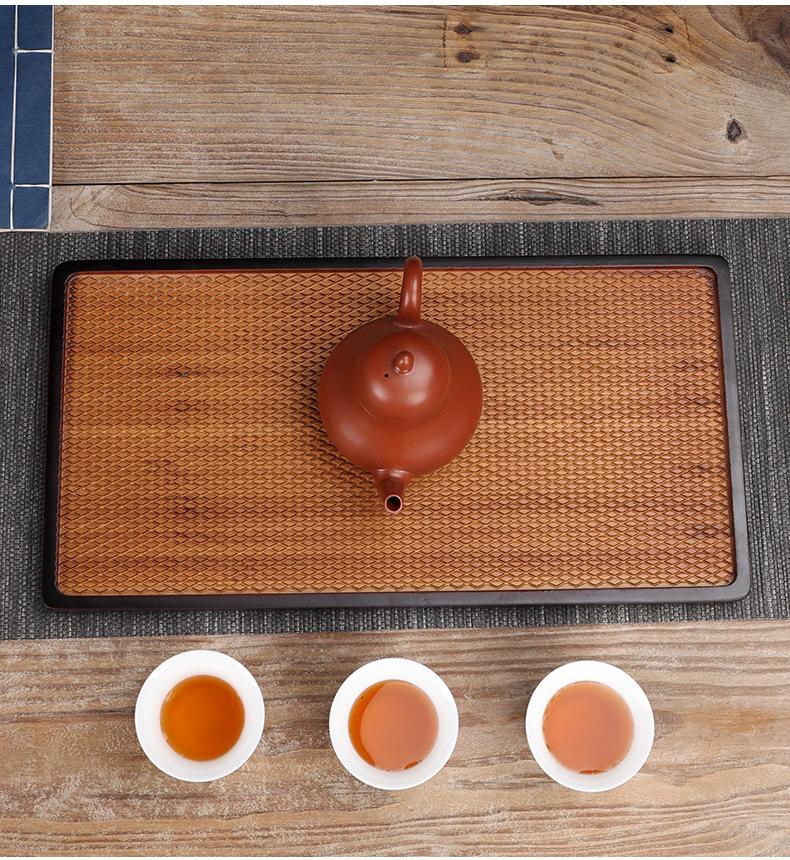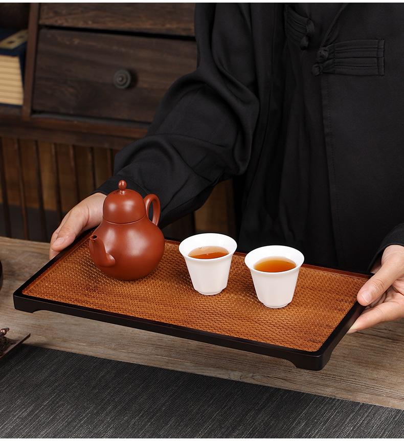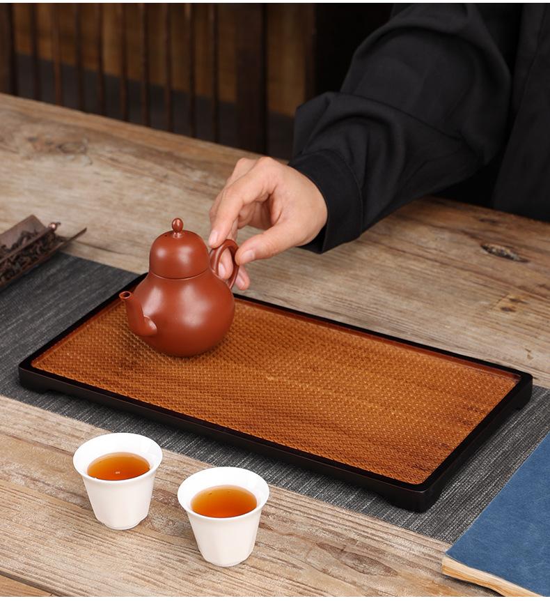Bandeja de madera de bambú, bandeja de madera maciza, bandeja cuadrada de bambú, bandeja rectangular, bandeja de té de disco para ceremonia del té con bandeja de té para refrigerios.