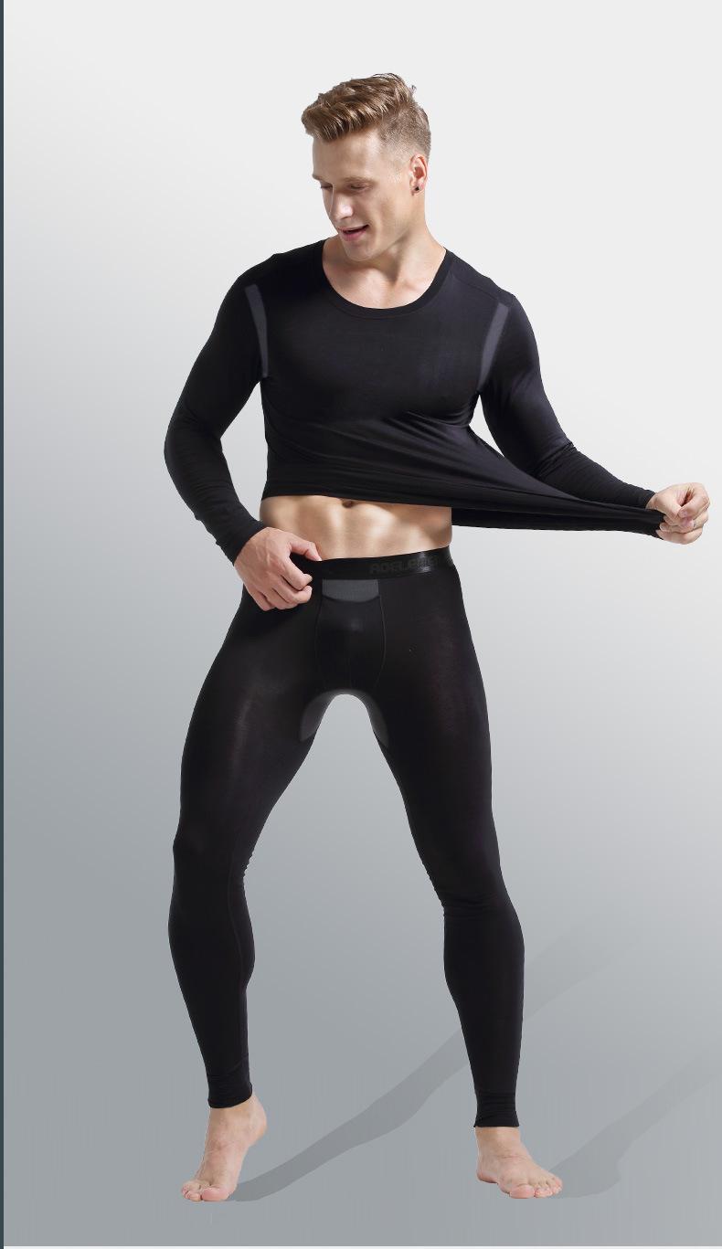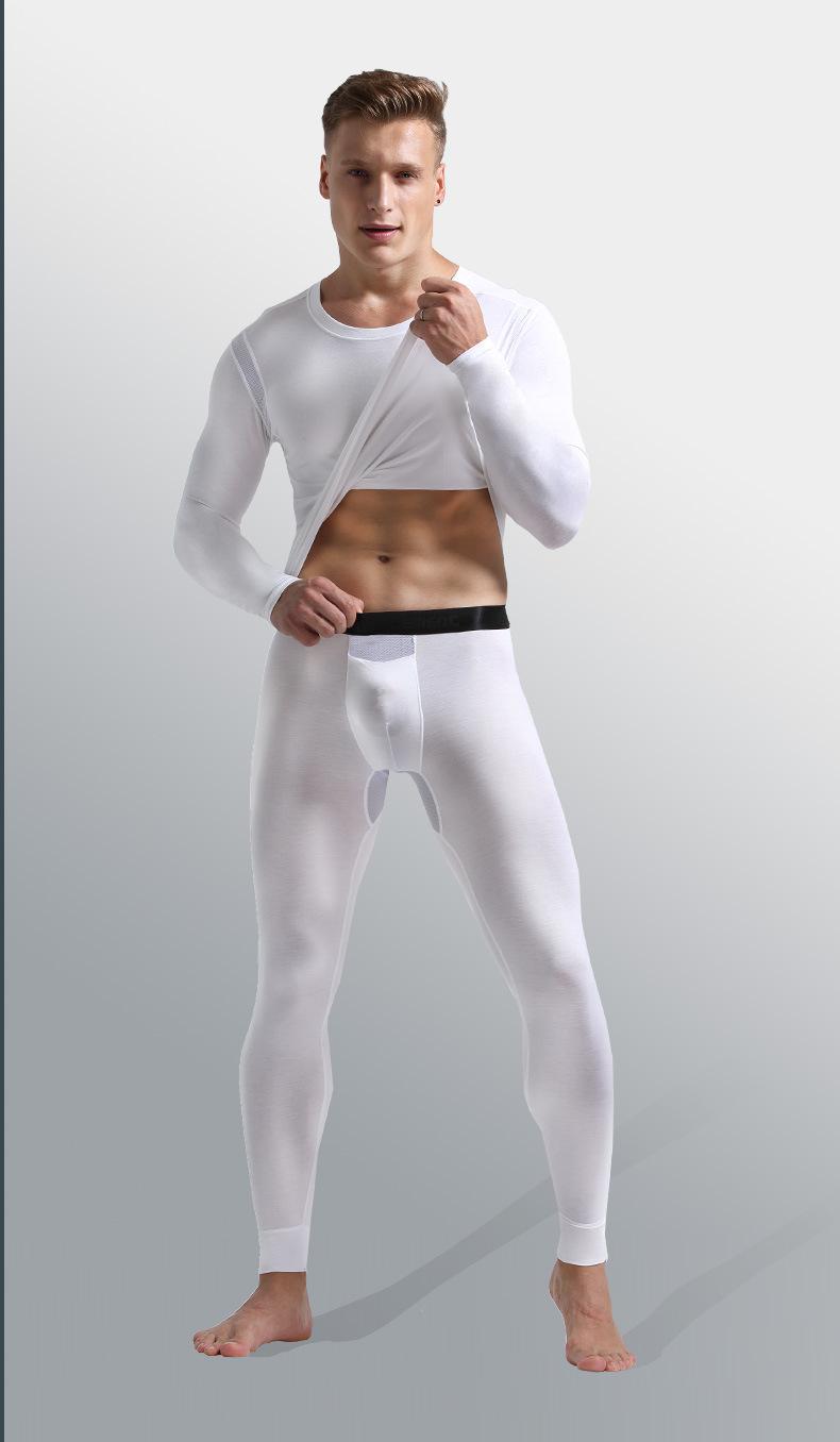 Ropa y pantalones finos de otoño para hombre, traje de malla de seda de hielo, transpirable, ajustado, ropa interior térmica para jóvenes, pantalones separados de otoño e invierno.