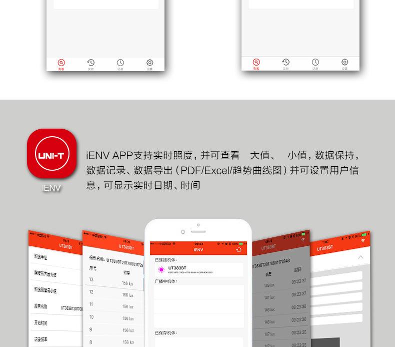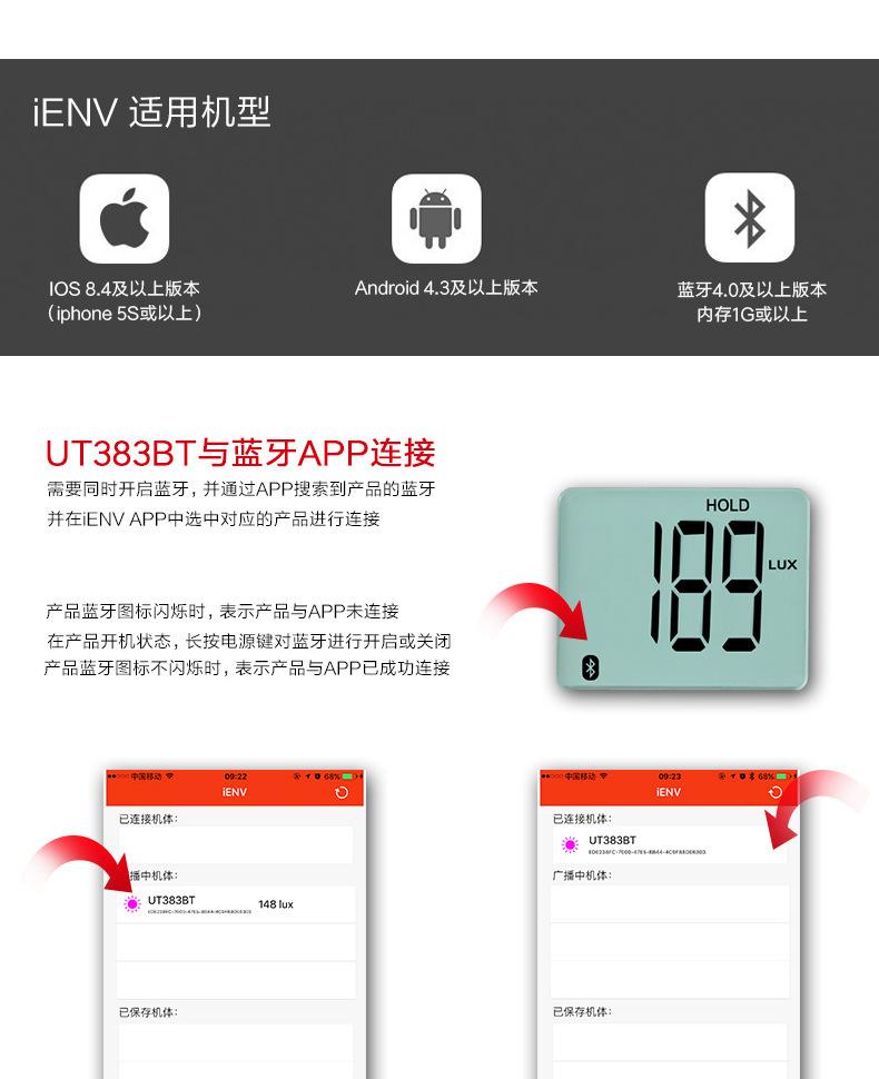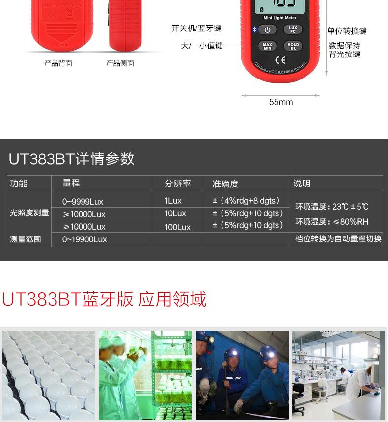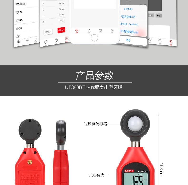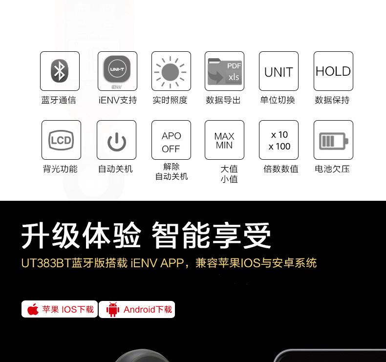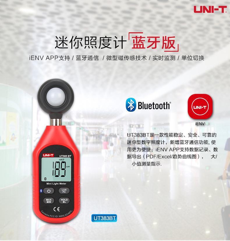 Mini iluminómetro digital Bluetooth Unide UT383/UT383BT, fotómetro con medidor de luminosidad y flujo de luz de mañana.
