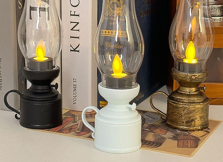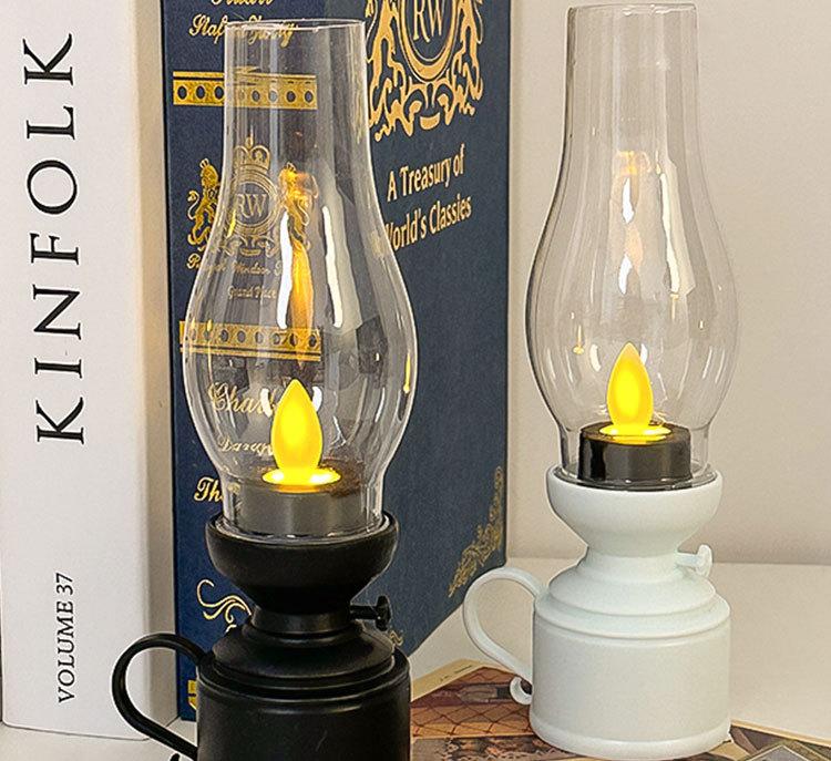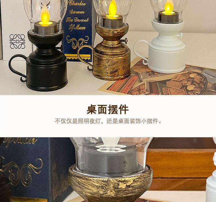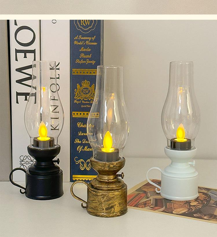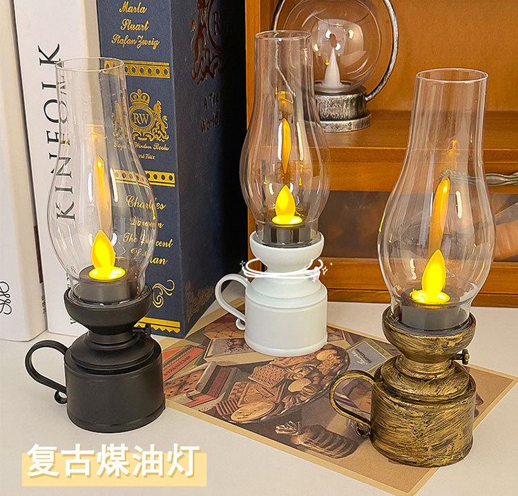 Lámpara de queroseno retro creativa, lámpara LED luminosa electrónica con forma de vela, luz nocturna, decoración de ambiente, adornos pequeños de escritorio
