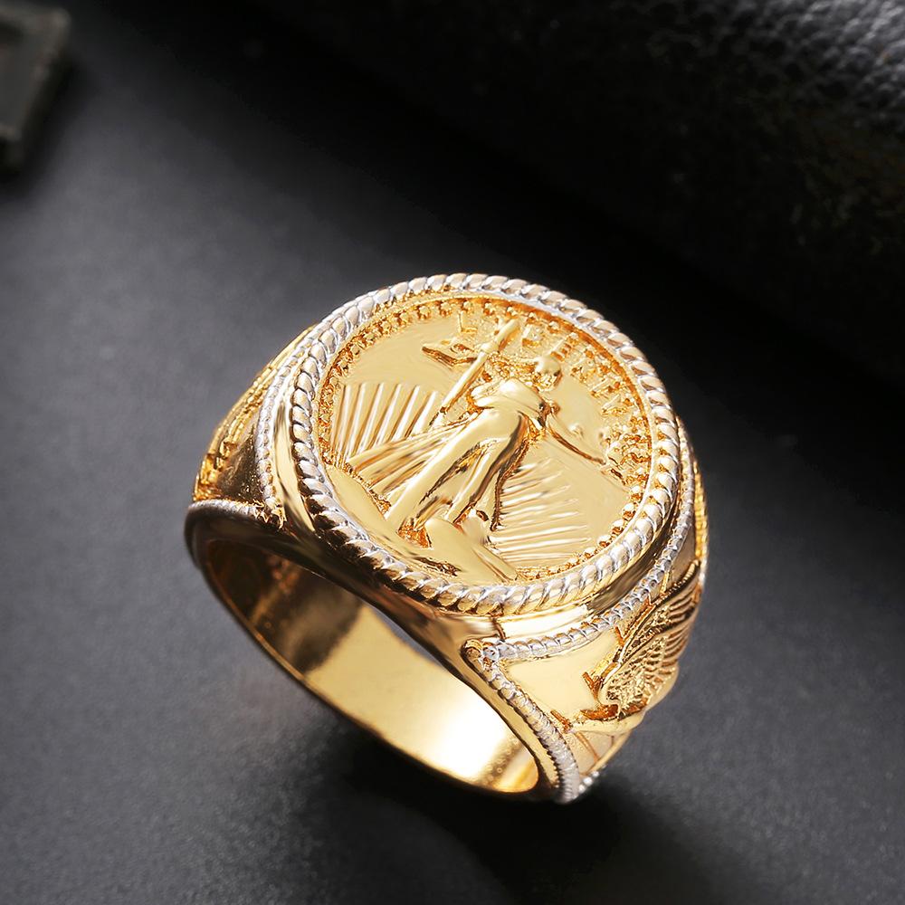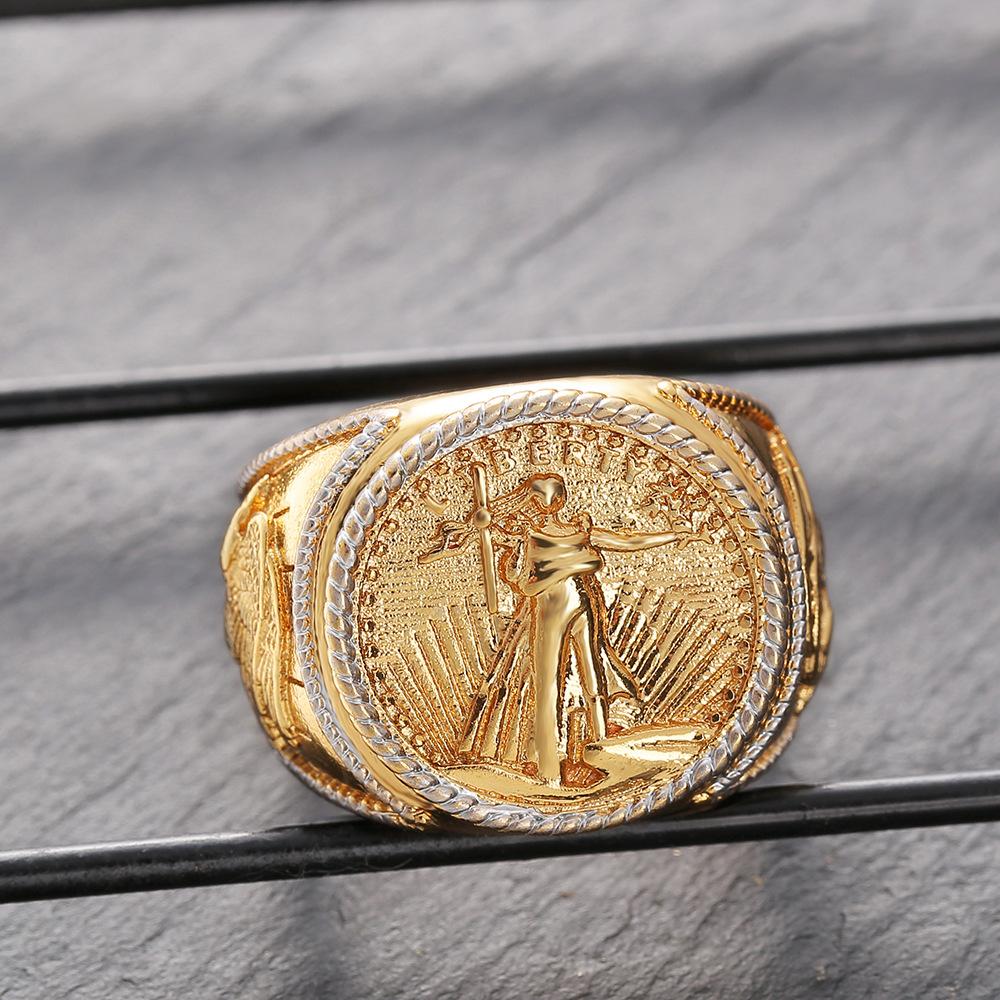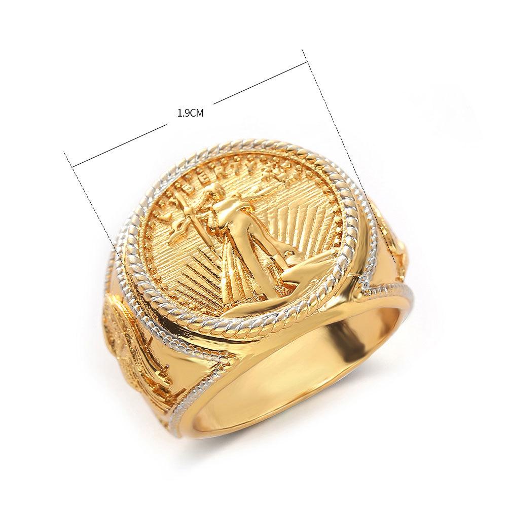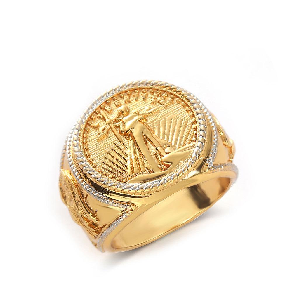 Zhen Rong desea Nuevo Americano Oro Galvanizado Oro 18k Color St. Anillo de oro con forma de moneda y águila doble de Gordon