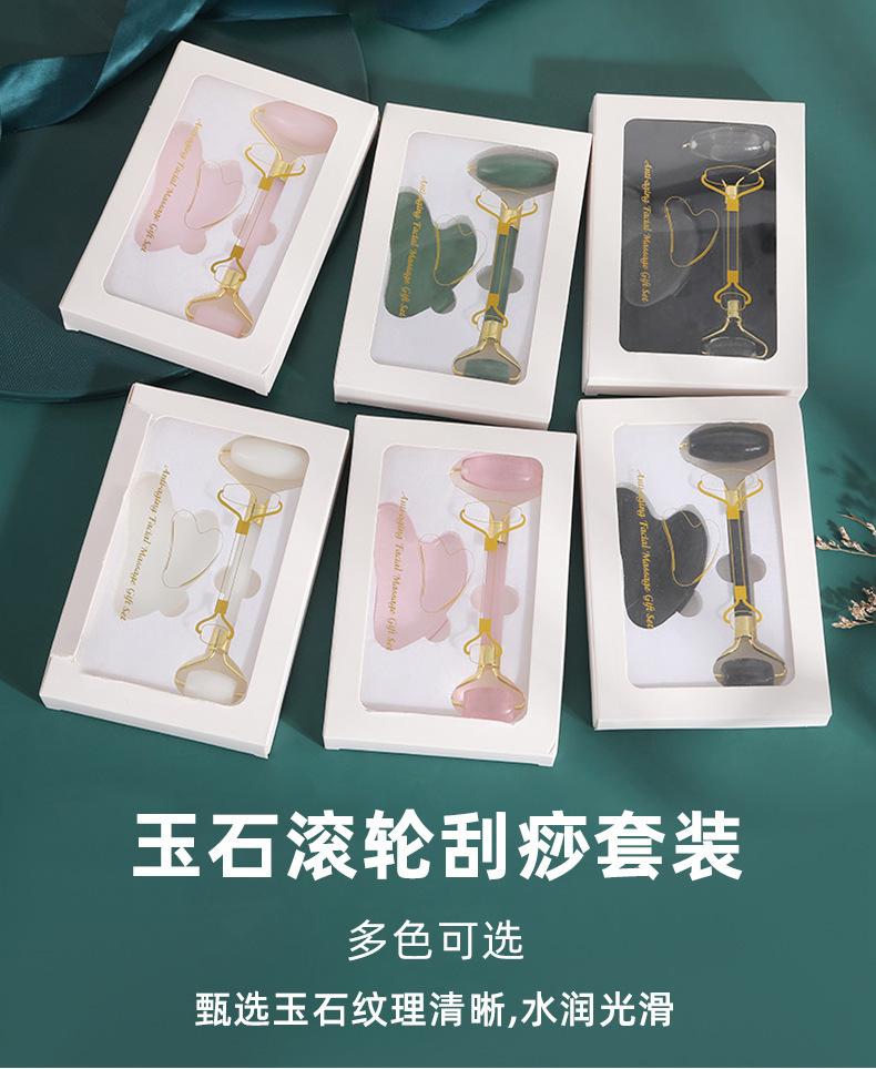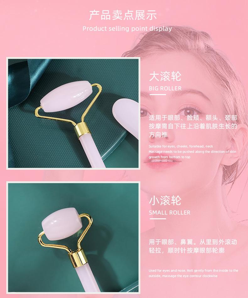 (Natural jade) Pink double-headed roller scraping board gift box, (Natural jade) Crystal pink double-headed ro...