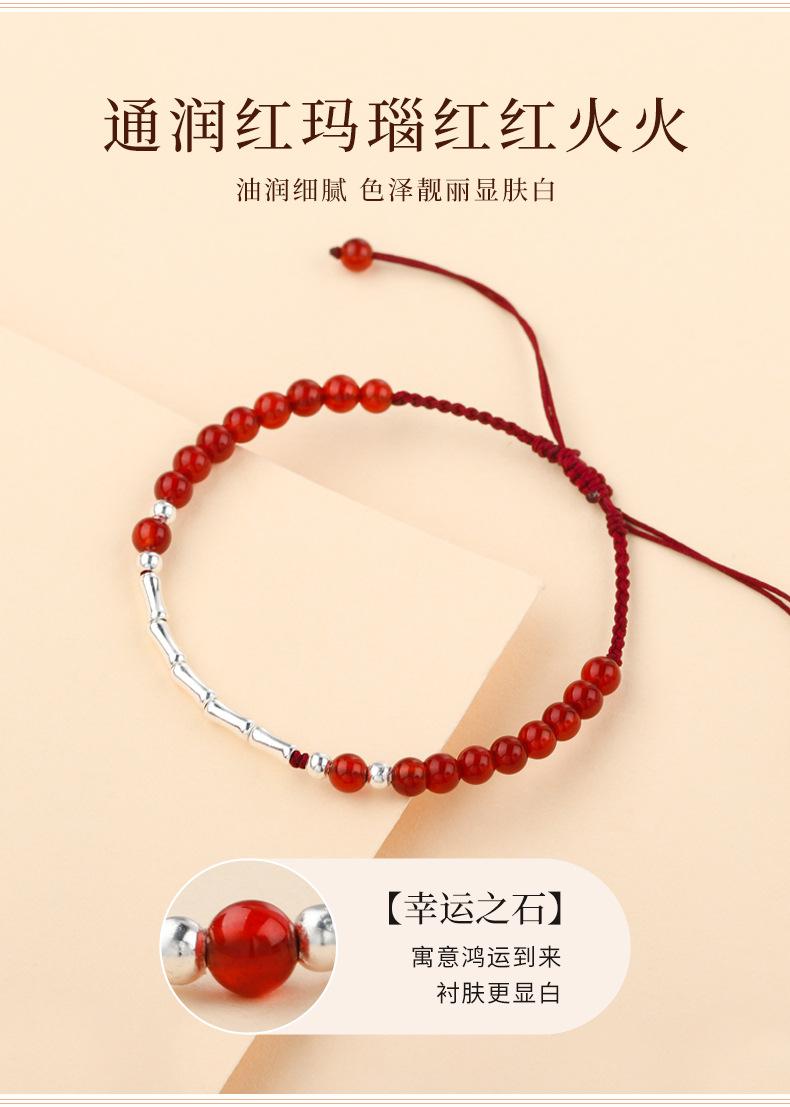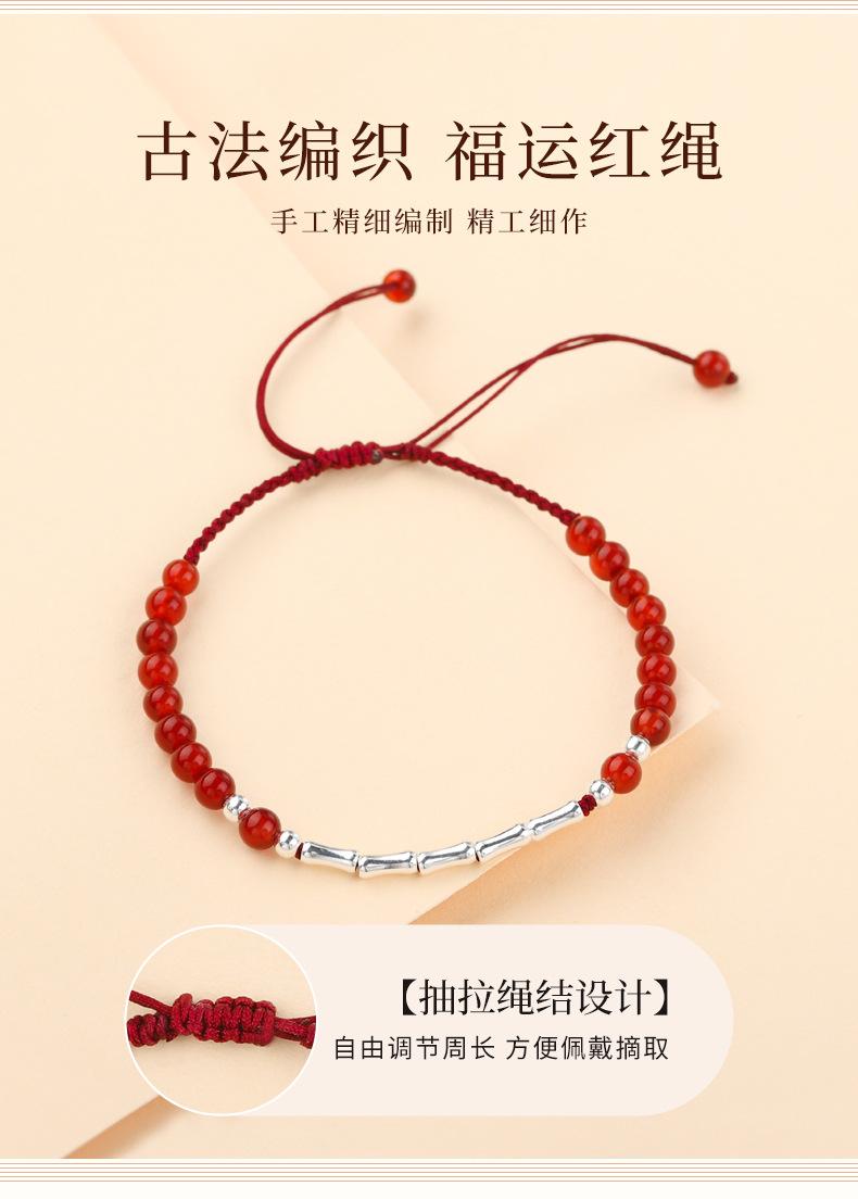 Compra Pulsera de Cuerda Roja Aterrizaje Bambú Plata S925 para Mujer Tejida a Mano Ágata Roja Natural Año Animal Pulsera Trenzada al por mayor en Joom.pro