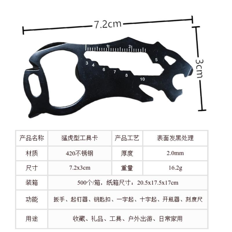 Compra Tarjeta de Herramienta Edc Multifuncional Transfronteriza Regalo Abrebotellas de Acero Inoxidable con Llavero Portátil con Logotipo Láser en Forma de Tigre al por mayor en Joom.pro